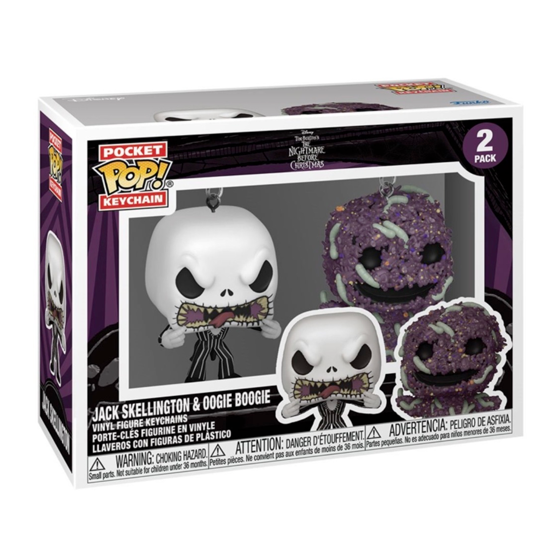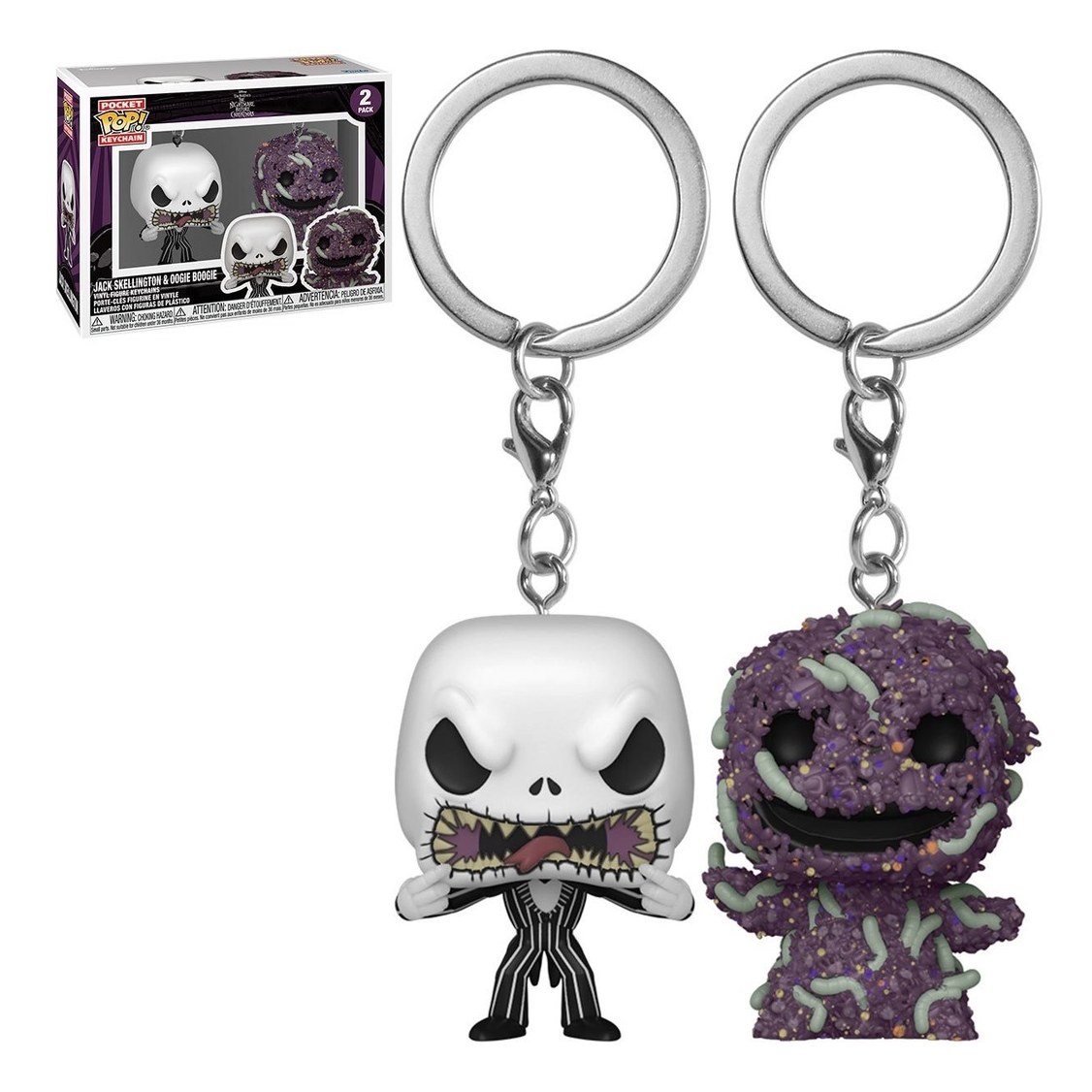 What’s this? Jack Skellington and Oogie Boogie are ready to bring the Halloween spirit to your Funko Pocket Pop! collection! This 2-pack is simply meant to be in your The Nightmare Before Christmas set! This The Nightmare Before Christmas Jack Skellington & Oogie Boogie Pocket Pop! Key Chain 2-Pack includes the dynamic duo in an adorable window display box. Each key chain figure measures approximately 3 cm tall.