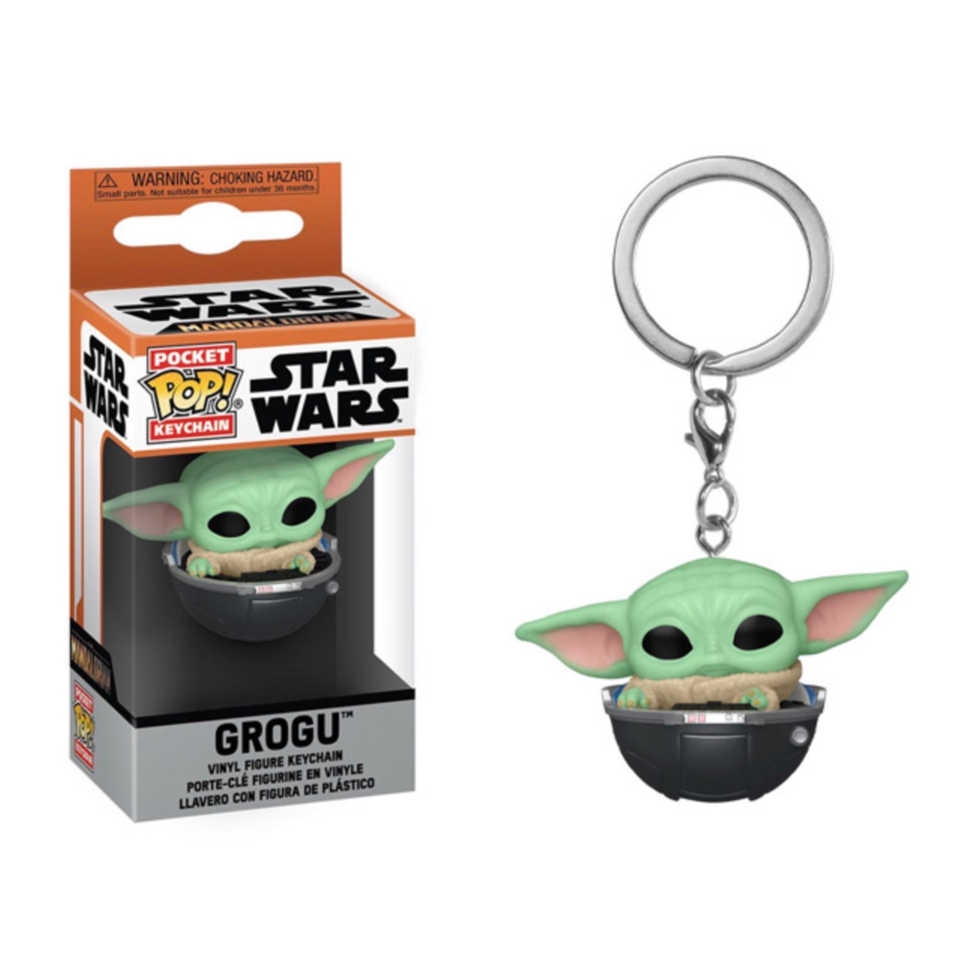 Explore the galaxy alongside Pop! Keychain Grogu™ in his hovering pram! Collect this adorable foundling as your next bounty and help reunite him with his traveling companion, the Mandalorian™, in your The Mandalorian™ collection! Vinyl keychain is approximately 10 cm long.