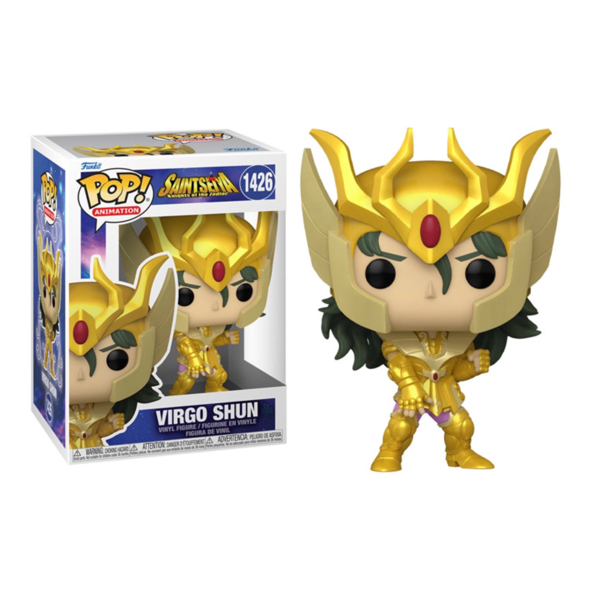 When the Olympian gods try to overtake Earth, Athena reincarnates and her five warriors emerge to harness mystic energy to fight alongside their goddess. Whether it was the manga or the 1986 anime TV adaptation that caught your attention, the knights are coming together to defend your Saint Seiya: Knights of the Zodiac collection. This Saint Seiya: Knights of the Zodiac Virgo Shun Funko Pop! Vinyl Figure measures approximately 9 cm tall. Comes packaged in a window display box.