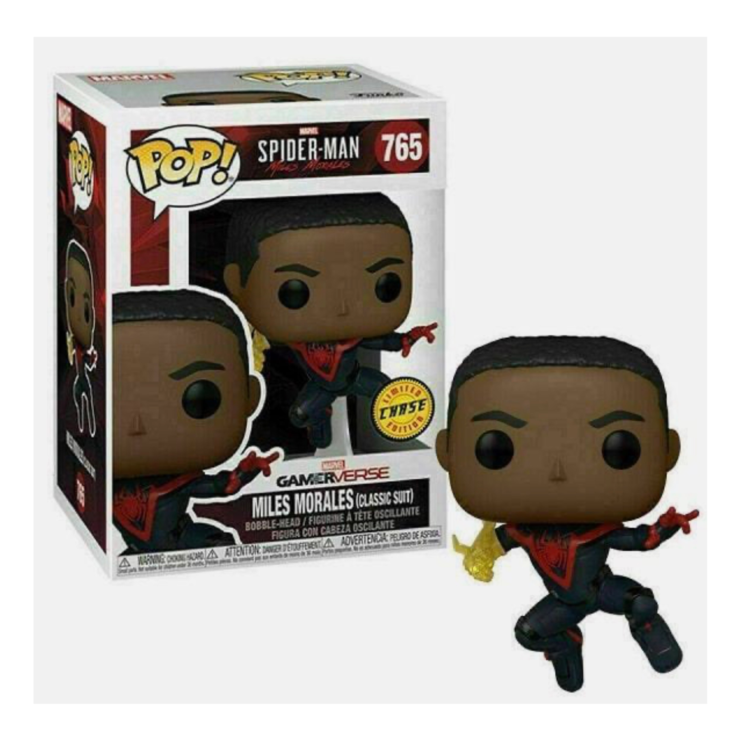 This Limited Chase Edition Spider-Man Miles Morales Game Classic Suit Pop! Vinyl Figure #765 measures approximately 9 cm tall. Comes packages in a window display box.
