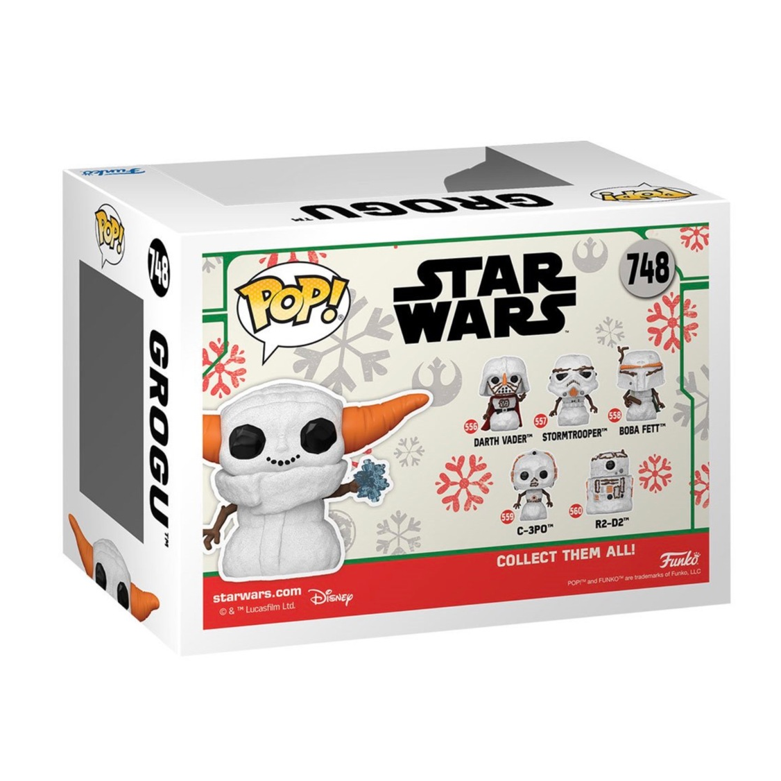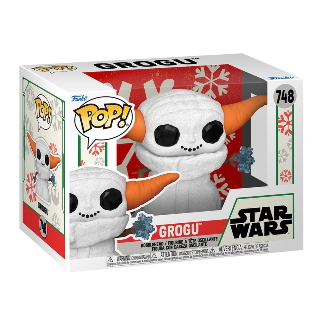 This Star Wars: The Mandalorian Holiday Grogu Snowman Funko Pop! Vinyl Figure measures approximately 10 cm tall. Comes packaged in a window display box