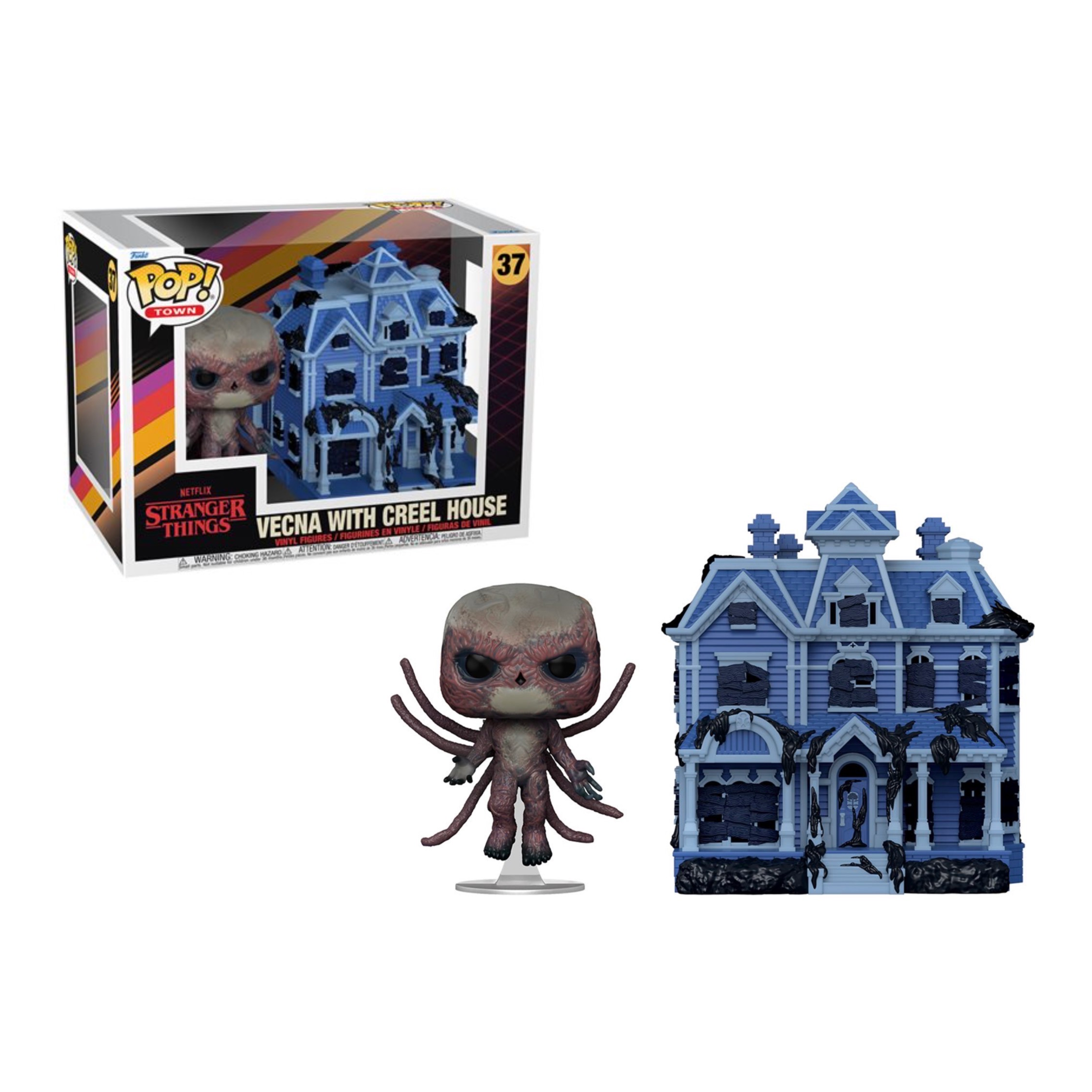 From Season 4 of Netflix’s Stranger things, comes evil Vecna and the spooky Creel House! This Stranger Things Season 4 Vecna with Creel House Funko Pop! Town comes packaged in a window display box. The Vecna Pop! figure measures approximately 11,30 cm tall while the Creel House measures 14,60 cm tall.