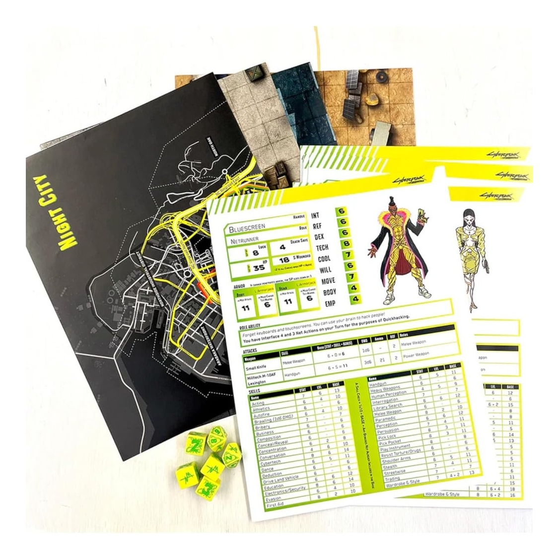 – Mappe, pedine e gettoni per aiutarti a dare vita al mondo di Cyberpunk: Edgerunners.