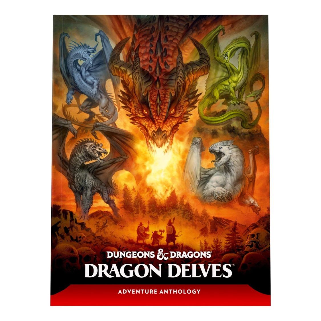 Meet the dragons of D&D in Dragon Delves, a collection of ten dragon-themed adventures for characters level 1 through 12. Featuring artwork rendered in ten unique styles, these ready-to-play adventures include streamlined prep and quick start guides for Dungeon Masters. Delve into mysterious dungeons, explore captivating fantasy locations, and come face to face with all the chromatic and metallic dragons, each with unique temperaments, alignments, and magic.
