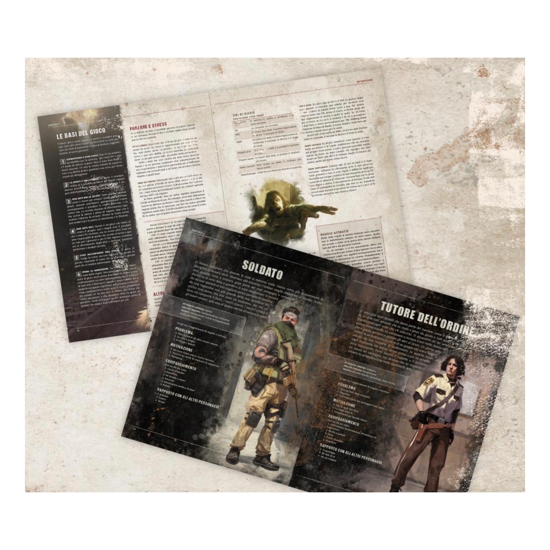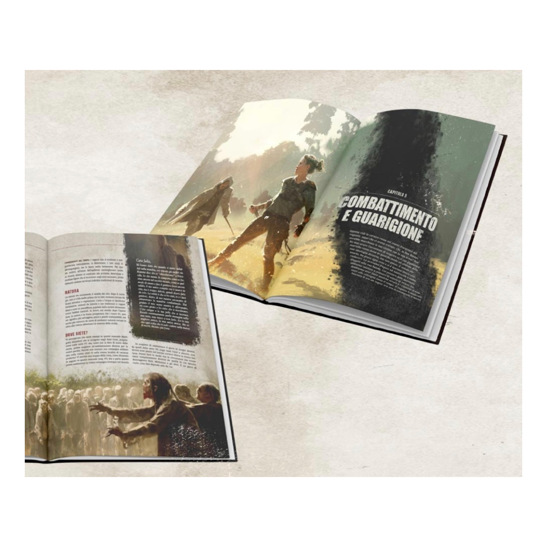 In The Walking Dead Universe: Il Gioco di Ruolo vestirete i panni di persone che lottano per sopravvivere in un mondo ostile. Sfide eccezionali possono nascere da qualsiasi cosa: dalla mancanza di cibo, da conflitti che covano in seno al gruppo, dalla mancanza di beni essenziali, dai difetti di costruzione celati nel vostro rifugio sicuro o dall’avvicinarsi di vaganti che bramano la vostra carne.