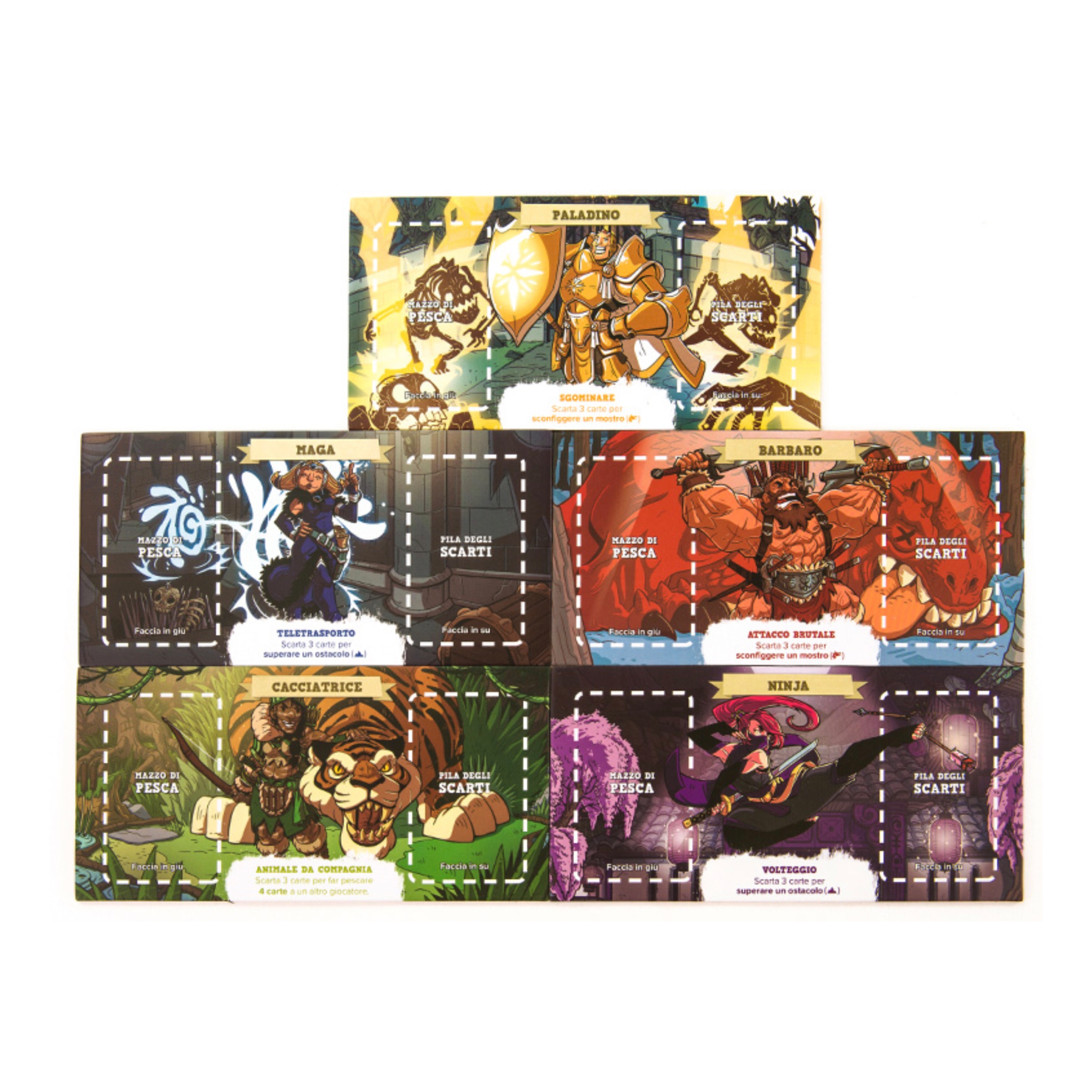 Ognuno di voi giocherà nei panni di uno dei dieci eroi: ogni eroe ha una sua abilità e delle proprie carte speciali. In questo gioco non ci sono turni. Tutti agiscono contemporaneamente, cercando di giocare i simboli che corrispondono a quelli della carta Dungeon corrente per superarla.