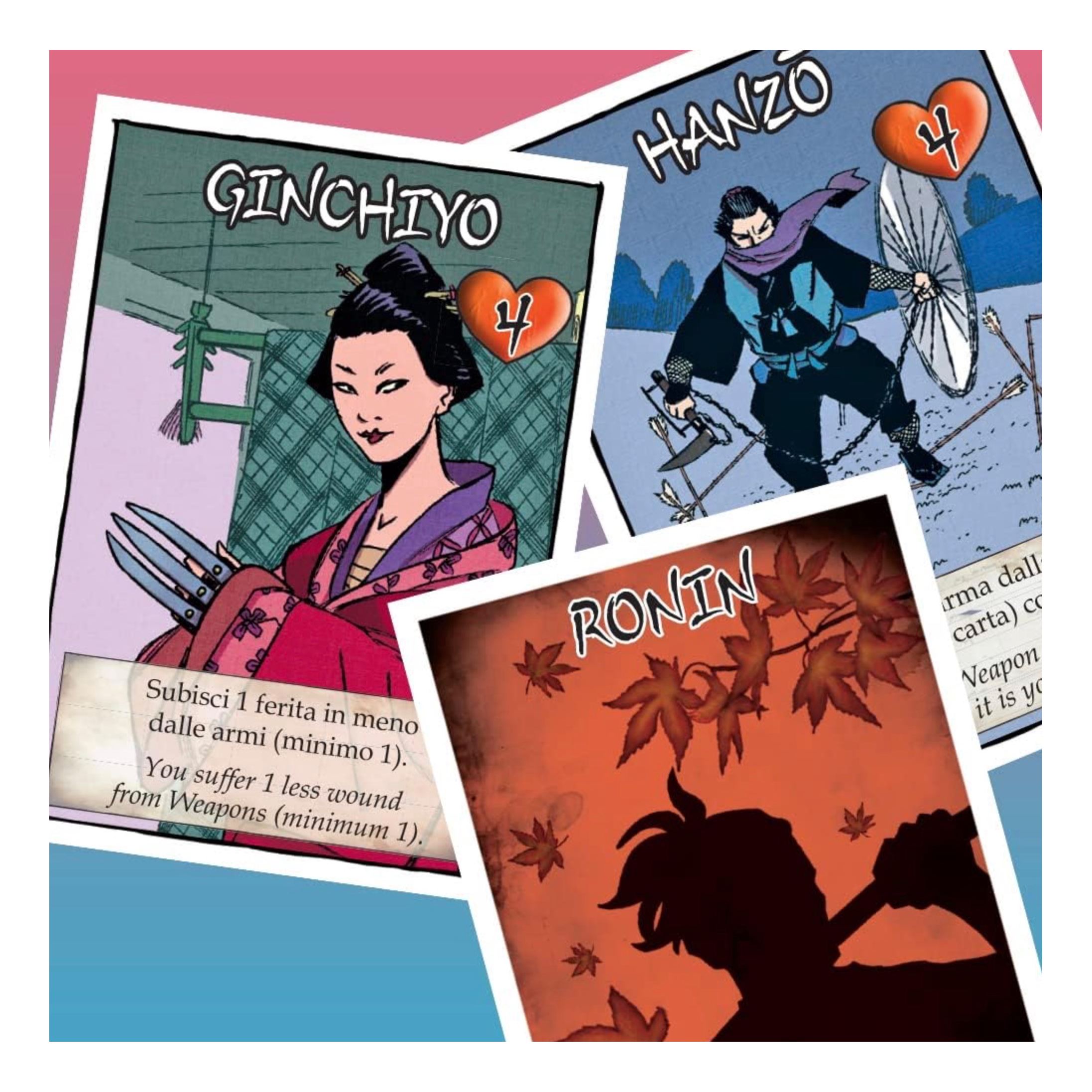 Nel regno del Sol Levante, fedeli Samurai proteggono lo Shogun che li comanda. Spietati Ninja tentano con ogni mezzo di sovvertire l’ordine dell’impero. Le lame delle katane scintillano sui campi di battaglia. Un solitario Ronin trama la sua vendetta. Riuscirai a ottenere la vittoria smascherando i tuoi nemici e onorando la via del guerriero?