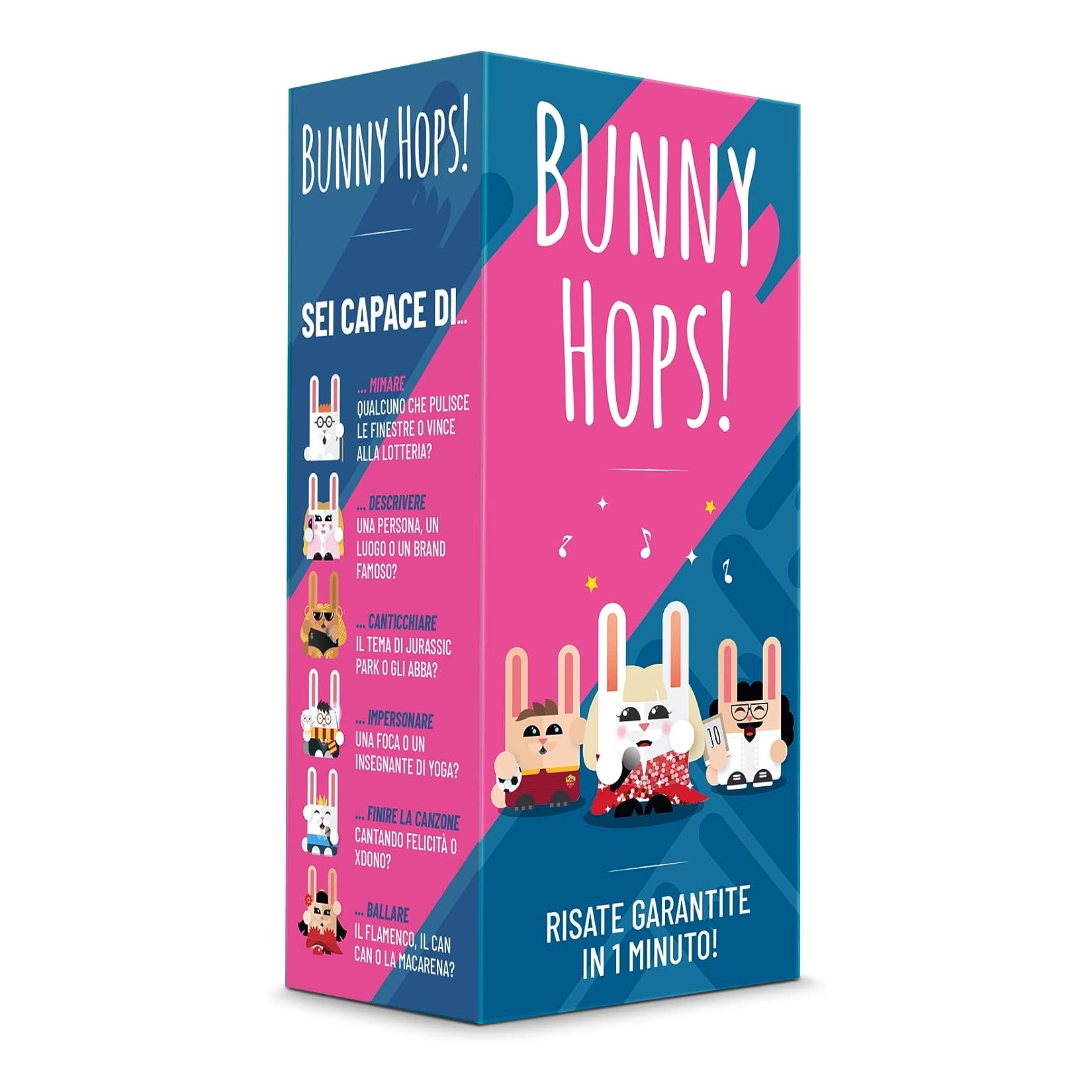 Come? Mimando, cantando, parlando etc, a seconda del tema della prova. Ma non solo! Per ogni turno, le squadre dovranno pescare una carta sfida che aggiungerà del delirio al tutto, costringendo i giocatori ad effettuare un’altra azione nel mentre.