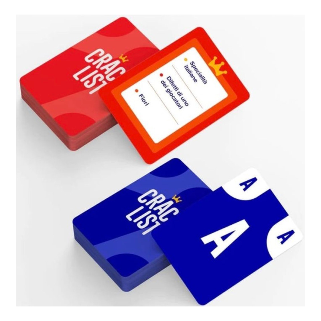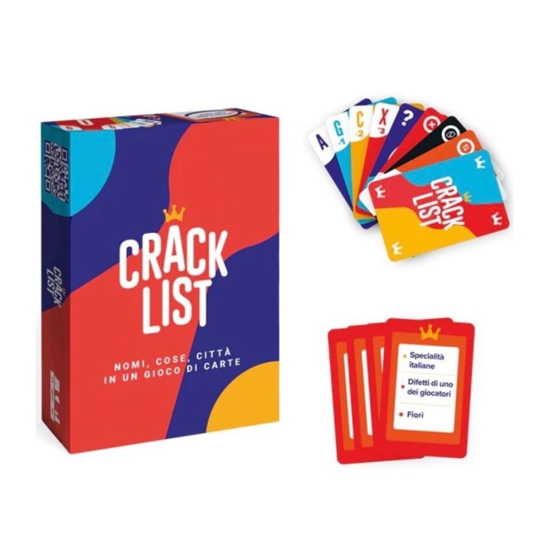 Il gioco di società di chi adora stare insieme: “Nome, cose, città”, in una nuova, spassosa versione! Con i partner, gli amici, i nonni o chi vuoi tu… In 2, 4, 6 o 8 (o molte di più se giochi a squadre), dopo il lavoro, con i colleghi, all’aperitivo o al digestivo, coi coinquilini o con i cugini, metti sul tavolo le carte di CRACK LIST… e il gioco è fatto! Crack List è un gioco di carte in 3 turni. Il primo che si libera di tutte le carte, ha vinto! Nulla di più semplice, o quasi…