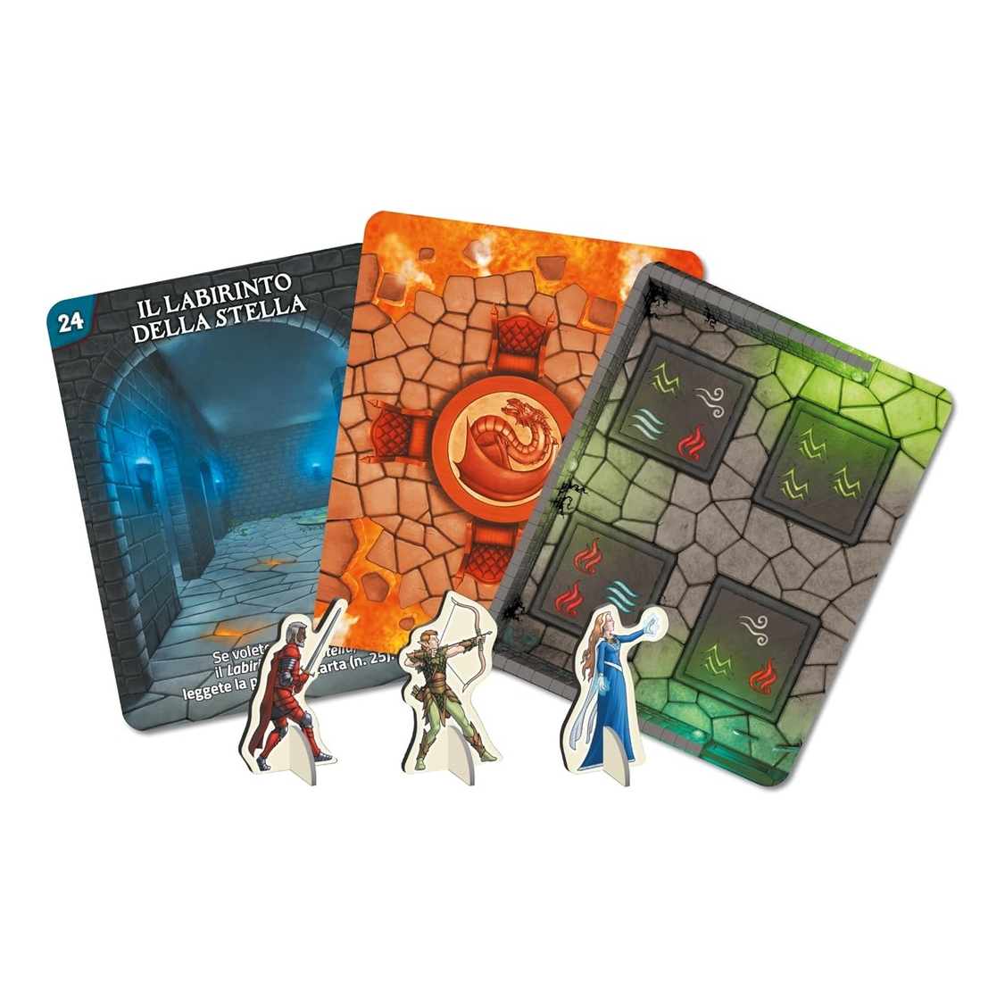 Entrate nelle profondità del vulcano, sentite l’odore di zolfo tutto intorno a voi, e il calore vi fa ammattire. Per fortuna il mago riesce a rendere l’aria più fresca, e il guerriero ha già trovato la strada. Ora non resta che scendere nel dungeon e affrontare puzzle, misteri e trappole mortali per scoprire il destino del drago Kronaris. Man mano che il dingeon si rivela, createne la mappa e spostate le pedine degli eroi. Recuperate le gemme perdute, ma fate in fretta: oscuri segreti si celano in profondità! Nel dungeon sono finalmente arrivati dei veri eroi: voi!
