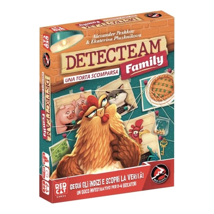 La chioccia ha cucinato una fantastica torta di cavolo ed è uscita per fare la spesa al mercato. Al ritorno, la torta è sparita! Chi avrà preso la torta? E perchè?In Detecteam vi calerete nei panni di astuti detective. Nel vostro turno, pescherete 2 carte scegliendo quale aggiungere a quelle già sul tavolo. Mano a mano che si aggiungono le carte si comporrà l’immagine completa, come in un puzzle. I giocatori dovranno scegliere le carte con indizi utili e scartare quelle non utili alla risoluzione del caso.