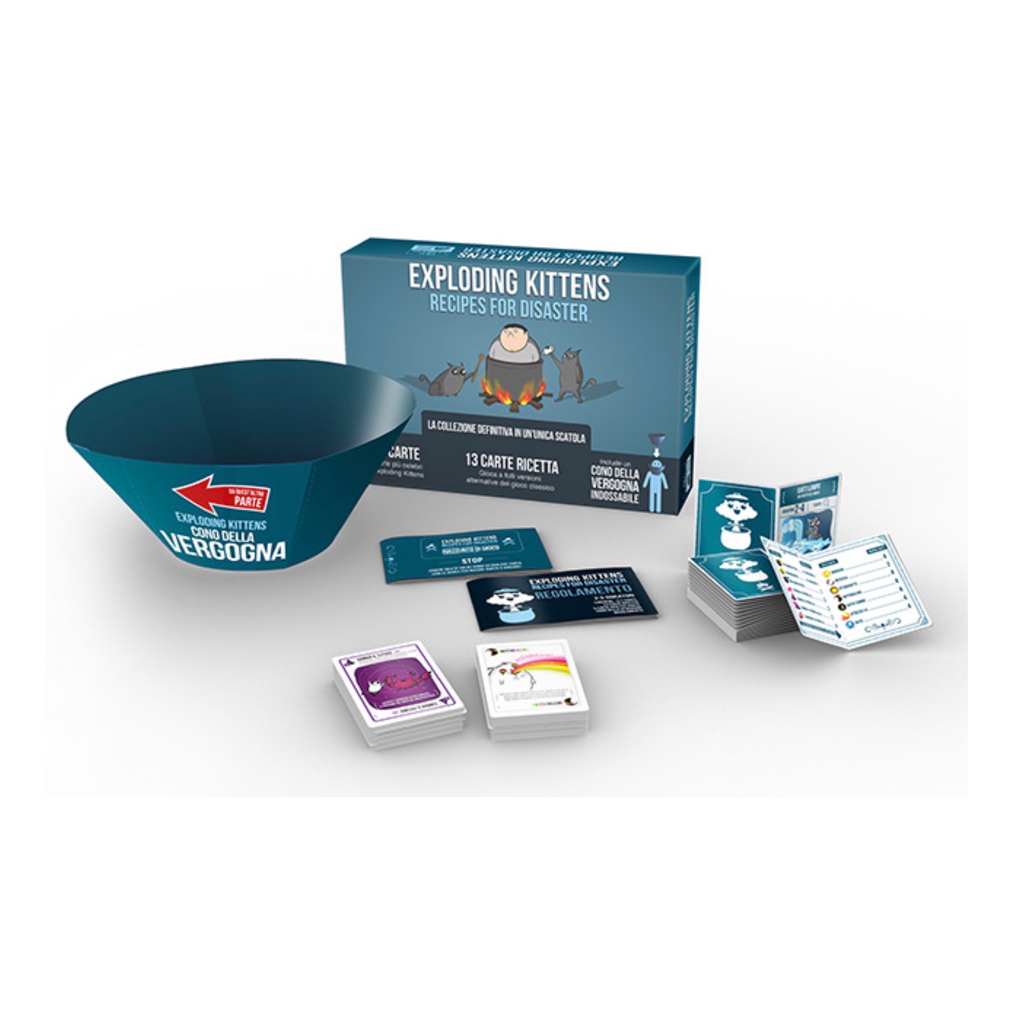 Contenuto: 121 carte più celebri di Exploding, 13 carte Ricetta, 1 Cono della Vergogna, 1 Regolamento.
