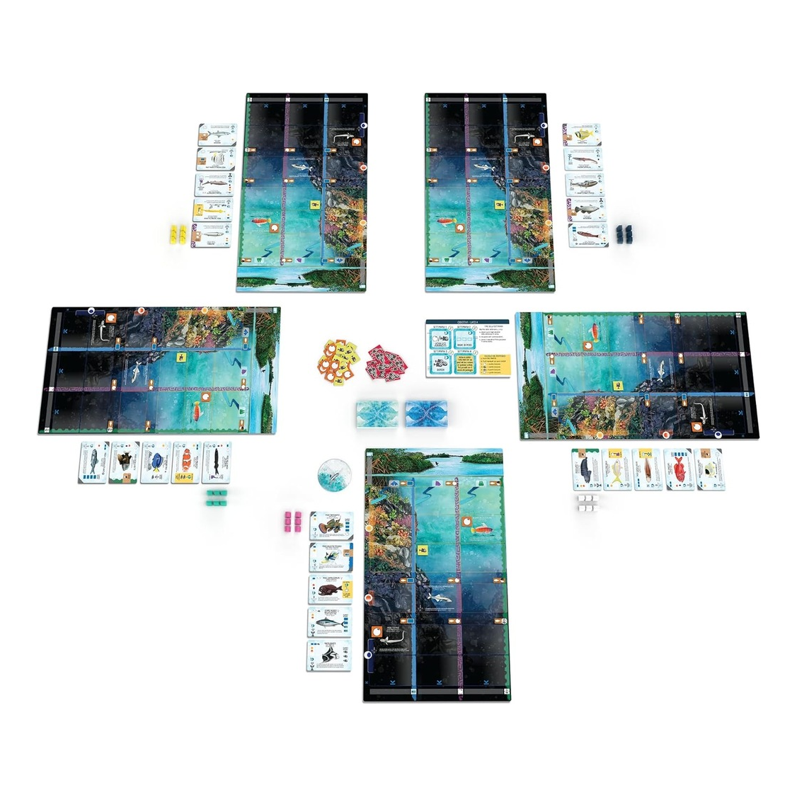 Basato sul sistema dell’acclamato Wingspan, Finspan è un gioco di combo e di tableau-building in cui collezioni pesci nei rispettivi habitat.