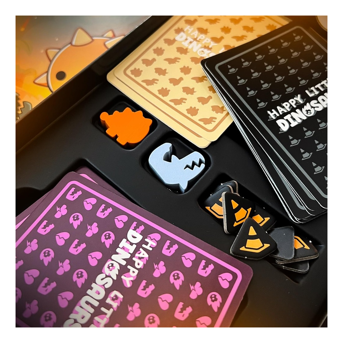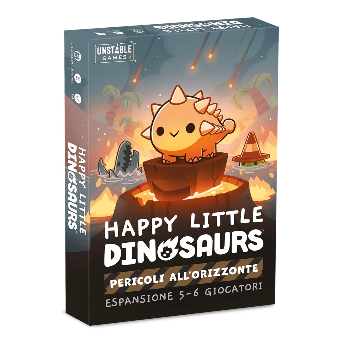 Questa espansione di Happy Little Dinosaurs contiene due nuovi personaggi e tre nuovi componenti di gioco.