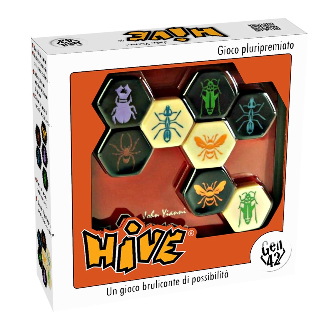 Hive è un gioco astratto per due giocatori in cui lo scopo del gioco è circondare completamente l’Ape Regina dell’avversario.