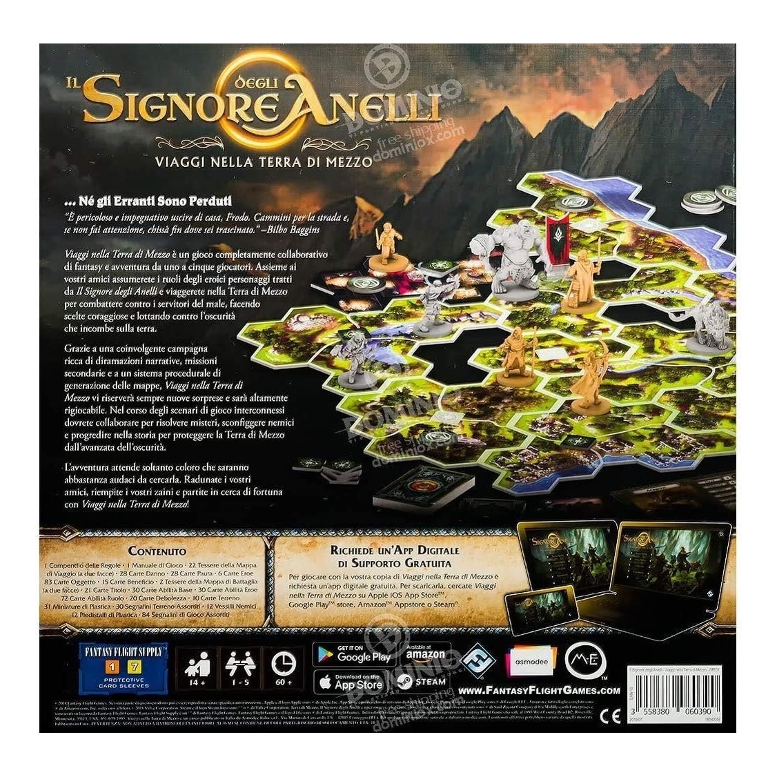 Viaggi nella Terra di Mezzo è un gioco completamente collaborativo di fantasy e avventura. Assumerete i ruoli degli eroici personaggi tratti da Il Signore degli Anelli e viaggerete nella Terra di Mezzo per combattere contro i servitori del male, facendo scelte coraggiose e lottando contro l’oscurità che incombe sulla terra. Grazie a una campagna ricca di diramazioni narrative, missioni secondarie e a un sistema procedurale di generazione delle mappe, Viaggi nella Terra di Mezzo vi riserverà sempre nuove sorprese e sarà altamente rigiocabile.