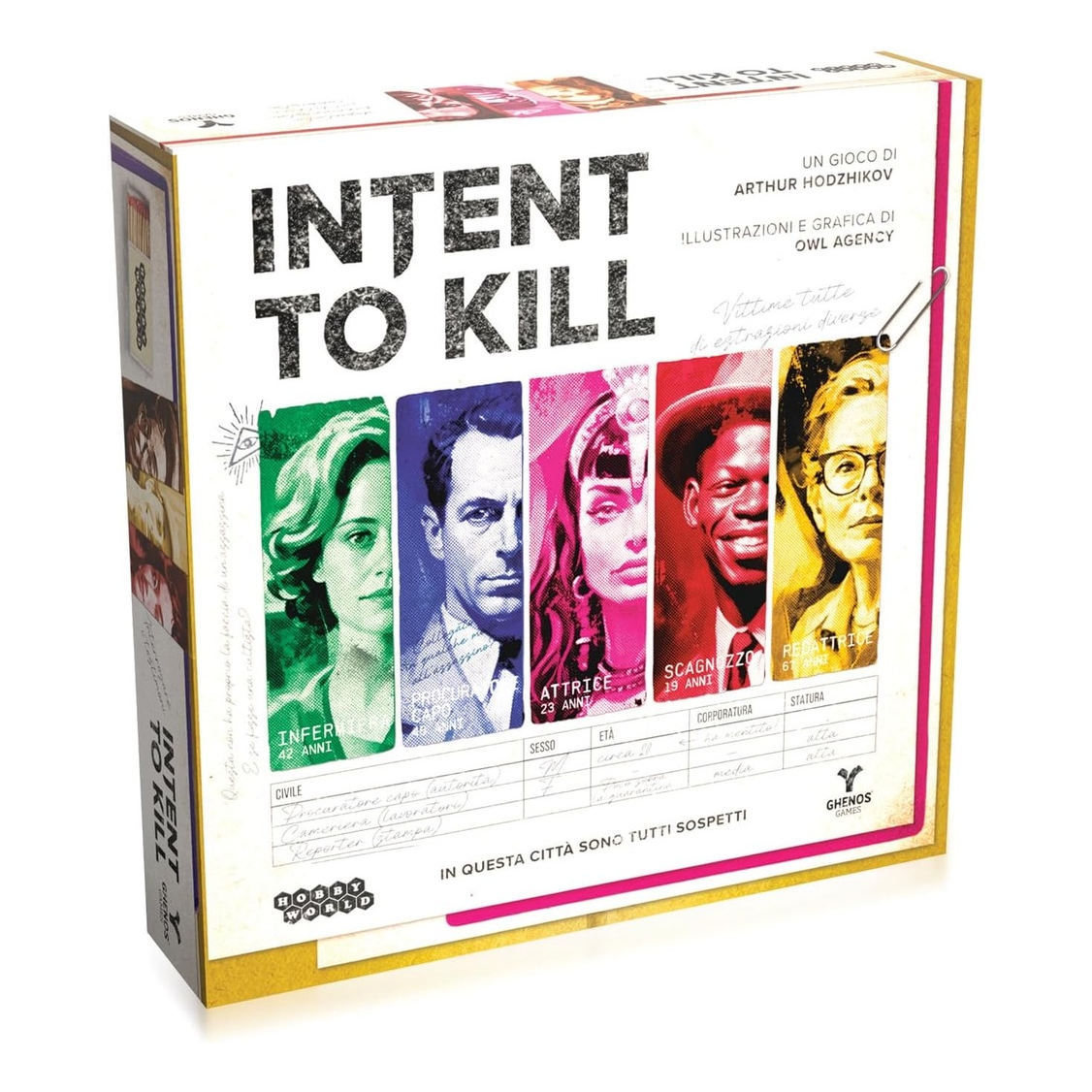 Intent to Kill è un gioco deduttivo che vede contrapposte due fazioni: l’assassino e il detective. La partita dura un massimo di 6 round, durante i quali l’assassino deve commettere gli omicidi seguendo un preciso Movente. Muovendosi per la città, seminerà il panico fra i civili, intimidendoli per far sì che non rispondano alle domande del detective. Fra i suoi alleati, anche la Persona Segnalata e un gruppo sociale di civili.