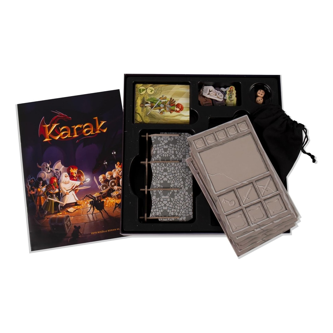 In Karak – Seconda Edizione, i giocatori esplorano un dungeon in continua evoluzione, composto da tessere che vengono rivelate man mano che gli eroi avanzano. Ogni giocatore sceglie un eroe con abilità speciali e si avventura nel labirinto, affrontando mostri e raccogliendo tesori. Il gioco include vari elementi come 80 tessere catacombe, 6 pedine eroi con portapedine, carte e plance eroe, gettoni vita e mostro, dadi e un sacchetto contenente mostri e tesori. Il tuo obiettivo è accumulare il maggior numero di tesori e punti sconfiggendo i mostri, utilizzando strategicamente le abilità del tuo eroe.