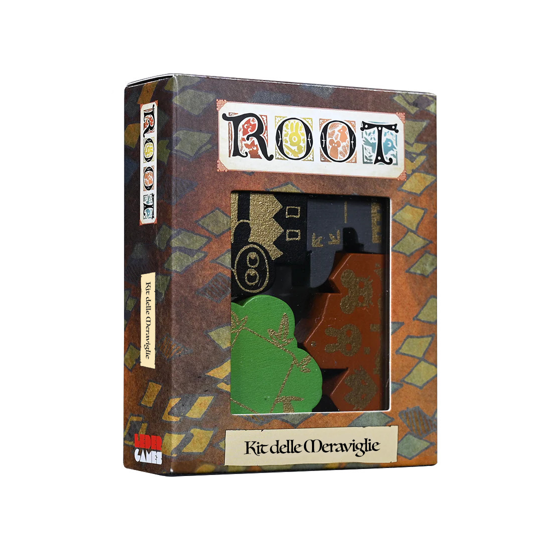 Il Kit delle Meraviglie include 4 pedine in legno serigrafate con relativo regolamento:
