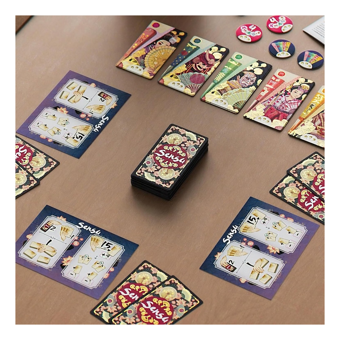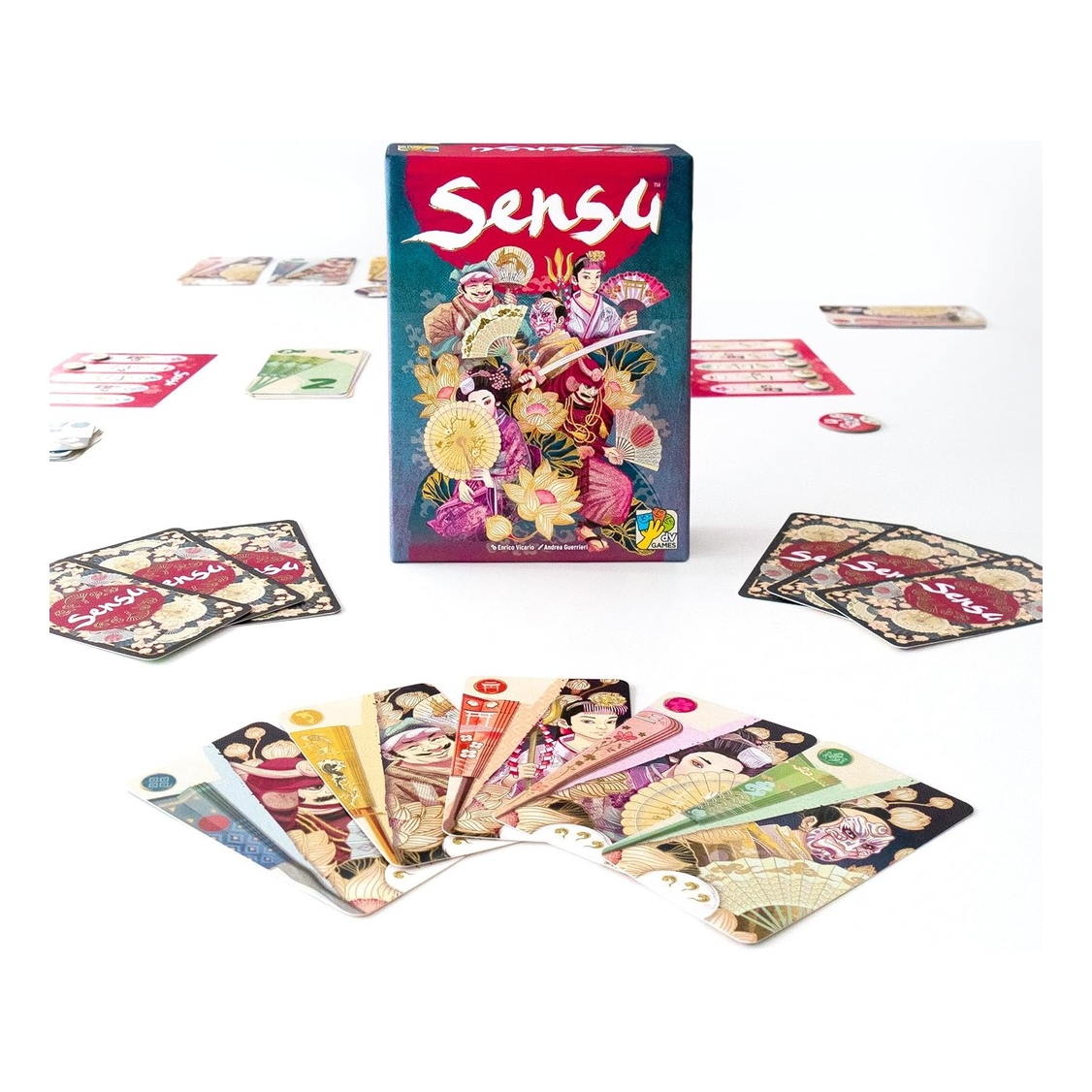 Sensu è un elegante gioco di carte per 1-5 giocatori, dove astuzia e ingegno sono fondamentali. Il tuo obiettivo? Comporre combinazioni di carte la cui somma sia esattamente 15 per conquistare le preziose carte ventaglio. Ogni ventaglio è formato da 7 stecche dello stesso colore: completa 3 ventagli prima degli altri per vincere la partita! Ambientato nel raffinato mondo della tradizione giapponese, tra danza, teatro e battaglie, Sensu unisce semplicità e profondità in un formato compatto e coinvolgente.
