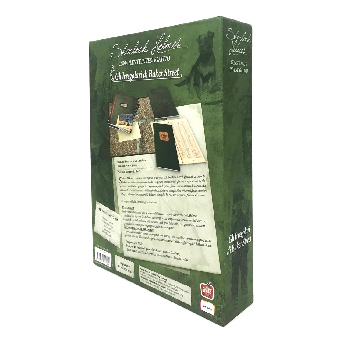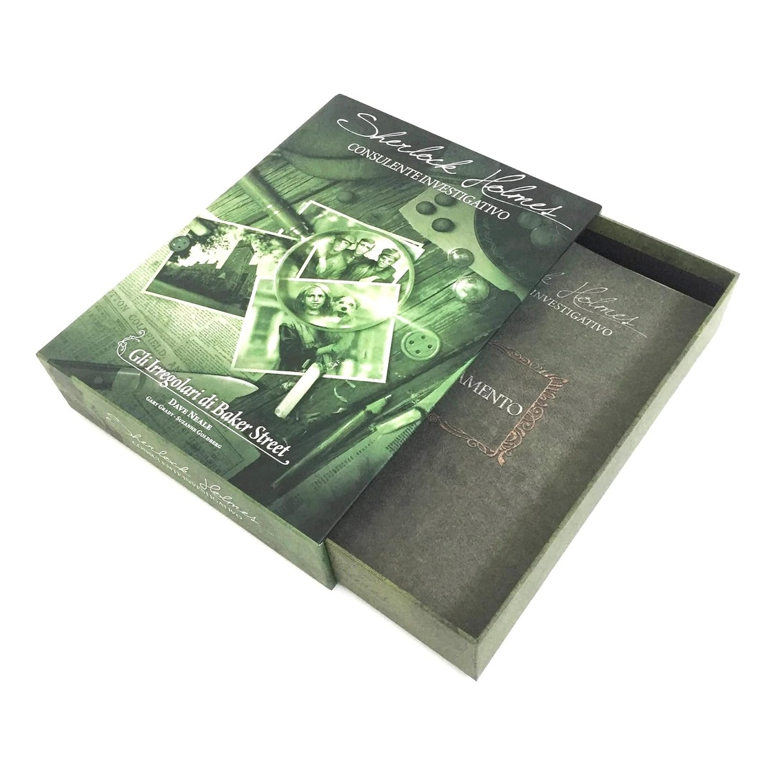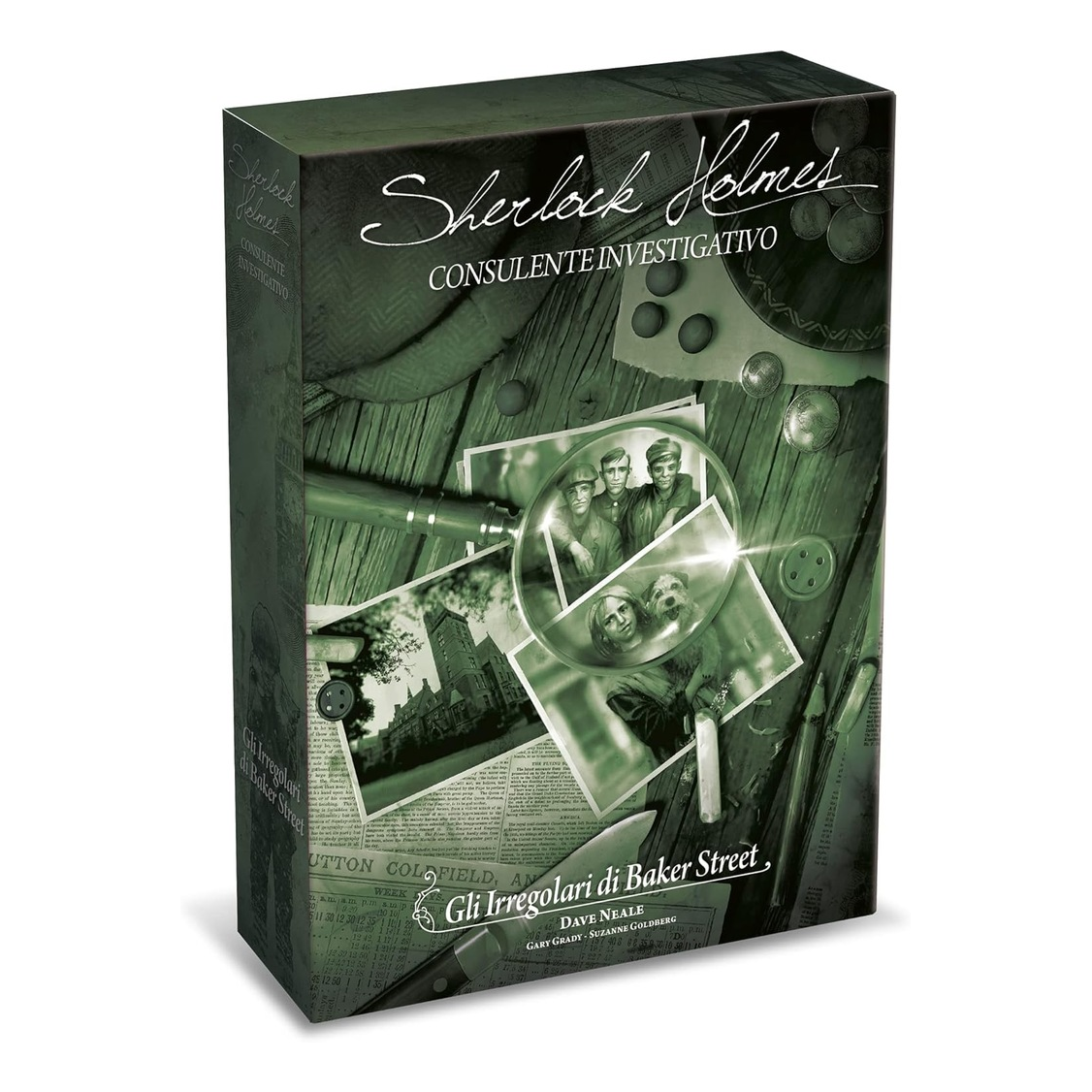 Sherlock Holmes Consulente Investigativo è un gioco collaborativo, dove i giocatori cercano di risolvere dei casi misteriosi intervistando i sospettati, consultando i giornali e aggirandosi per le strade in cerca di indizi. Qui i giocatori seguono i passi degli Irregolari, i giovani ragazzi di Londra che aiutano il detective più famoso di tutti i tempi nel corso delle sue indagini. Una volta completate le vostre indagini, confrontate le vostre capacità deduttive con quelle del maestro in persona, Sherlock Holmes.