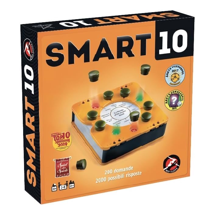 Leggi la domanda, ci sono dieci possibili risposte, tenterai di darle tutte per sbancare rischiando di perdere tutto o ti saprai accontentare… 200 domande 2000 possibili risposte Smart10 è Un party game innovativo che grazie al suo design si può giocare in mano, ovunque, senza bisogno di fogli, penne, tabelloni o altro appoggio. Tante sfide diverse e la sua intuitività lo rendono perfetto per tutti. Nelle serate fra amici o in famiglia, lasciati coinvolgere dalla sfida!