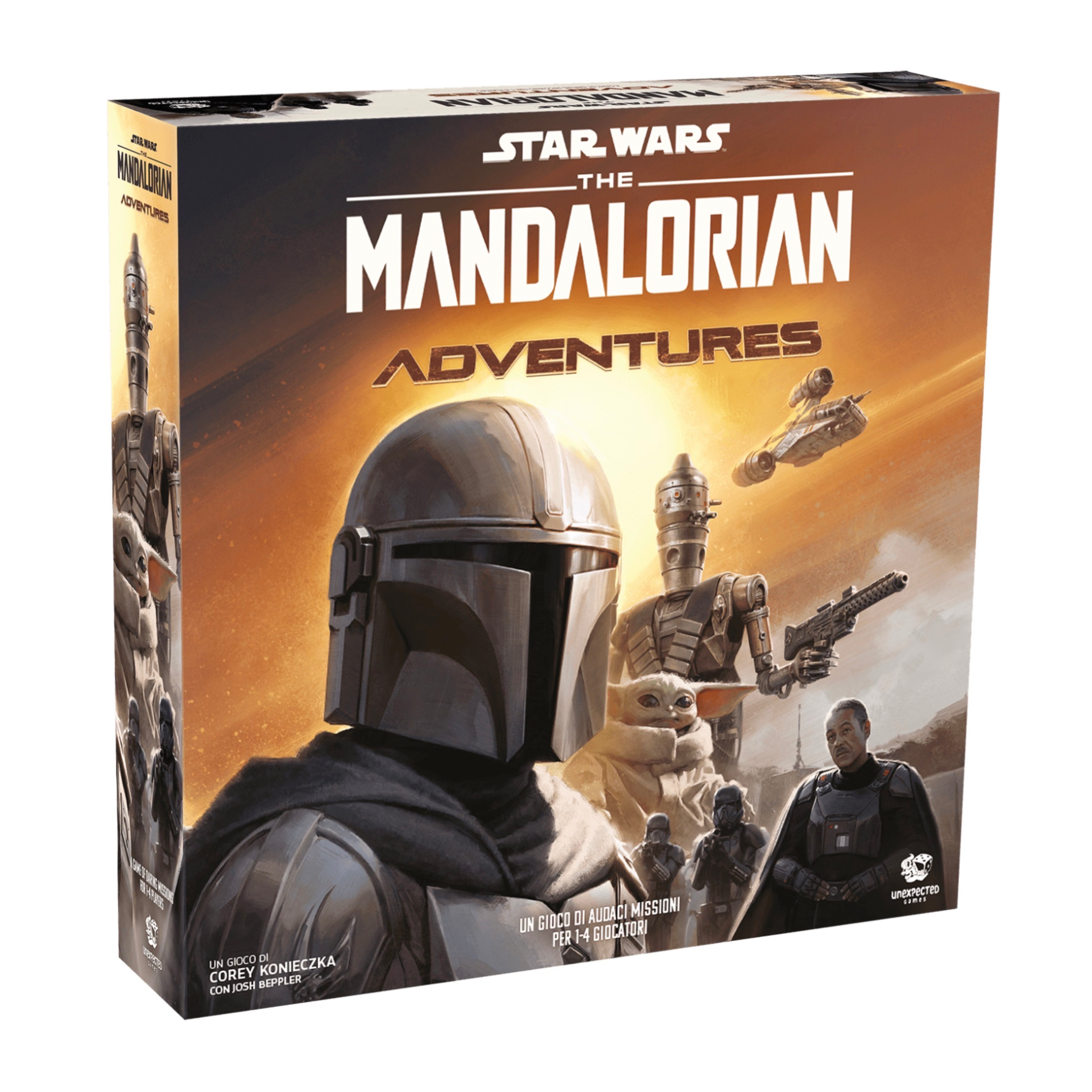 Quando gli viene offerto un lavoro redditizio, un solitario cacciatore di taglie inizia un viaggio che metterà alla prova le sue capacità e cambierà il mondo che conosce. I giocatori impersonano il leggendario cacciatore di taglie e i suoi alleati mentre lavorano insieme per completare audaci missioni ispirate alla stagione 1 di The MandalorianTm. Ognuno con le sue carte dalle strategie uniche, i giocatori collaborano sconfiggendo i nemici e superando gli ostacoli per completare l’obiettivo di ogni missione. Tutta l’azione si svolge grazie a un libro di mappe splendidamente illustrato, mentre i giocatori ricreano i momenti più memorabili della prima stagione della serie Disney+. Grazie a una meccanica di gioco intuitiva e facile da spiegare, ogni partita aggiungerà nuove regole, componenti e missioni aggiuntive alle precedenti, inclusa un’entusiasmante modalità con traditori nascosti. Ogni turno si inizia con quattro carte in mano e bisogna giocarne almeno due ad ogni turno. Tutte queste carte possono essere utilizzate per muovere il proprio personaggio sulla mappa, attaccare o spostare un nemico, esplorare le tessere obiettivo vicine o pescare carte pianificazione extra; la forza delle carte è indicata dal numero in alto a sinistra. Tuttavia, alcune carte sono anche sinergiche con ruoli specifici: ad esempio, giocando una carta specifica nella sezione Intel si può ottenere un bonus o addirittura un’azione extra nel proprio turno.