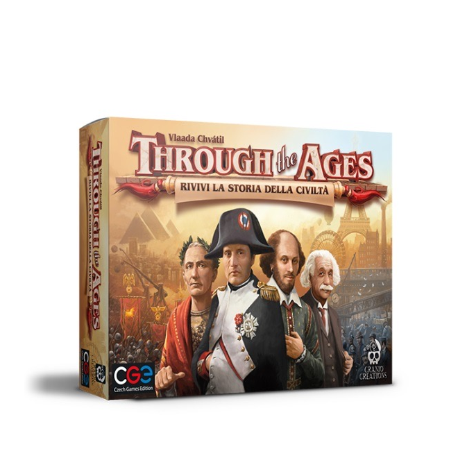 Ciascun giocatore dovrà sviluppare una civiltà partendo dall’antichità fino ai tempi moderni, cercando di lasciare la propria impronta sulla storia. La vostra civiltà guadagnerà Punti Cultura grazie all’influenza sugli affari mondiali attraverso letteratura, religione, costruzioni meravigliose, grandi leader, e trattati internazionali. Non tutte le influenze sono sempre positive: potrete condurre la vostra civilta’ con soldati e spade, o fare la storia grazie ad un assassinio… Starà a voi decidere se la vostra civiltà lascerà il segno incoraggiando le arti, lanciando una crociata o costruendo fast food! Through the Ages è un gioco di civilizzazione non particolarmente complesso, con tante variabili e combinazioni di carte che rendono il gioco sempre molto interessante. Un titolo attesissimo da tutti gli appassionati!