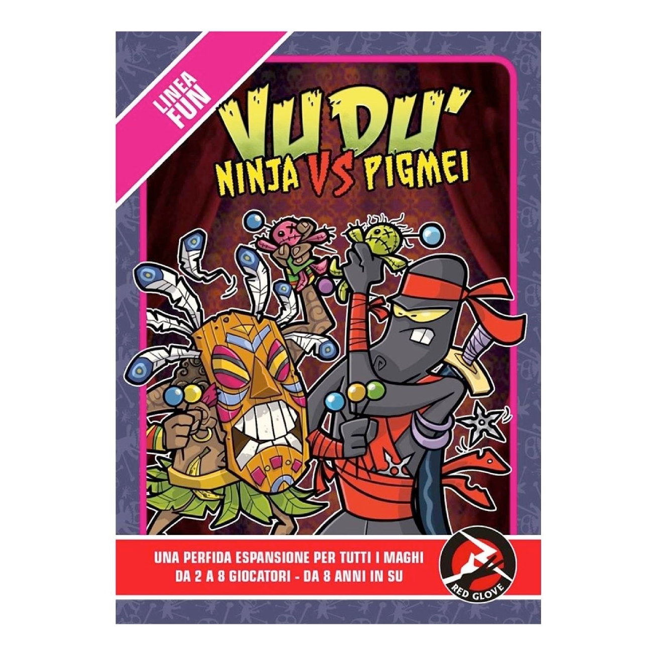 Banzai!Dalle ombre più remote e dalle foreste più intricate giungono nuovi sfidanti al grande torneo di Vudù!Incantesimi esilaranti, artefatti improbabili e maledizioni a dir poco irriverenti porteranno le vostre partite a Vudù ad un livello ulteriore… di demenza!Vudù: Ninjas vs Pygmies modifica il numero di giocatori richiesti per una partita da 2 a 8 (rispetto ai 3-6 del gioco base), poi introduce due nuove scuole di magia: gli inafferrabili Ninja, in grado di tenere segrete e nascoste le loro arti rendendo difficile ricordarle e i Pigmei, velocissimi e letali, oltre che abili nel lanciare rapide maledizioni che necessitano di un solo ingrediente!