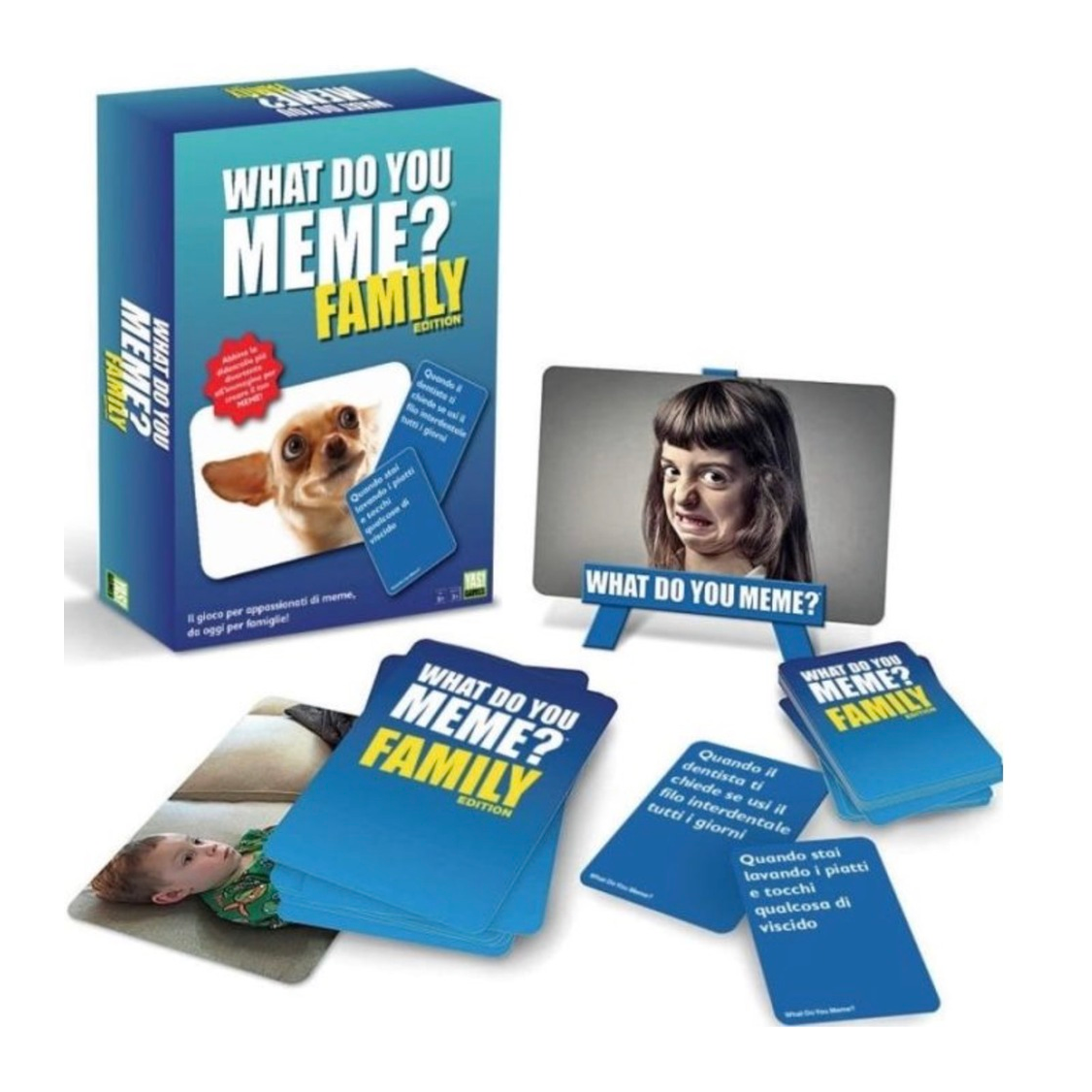L’edizione Family contiene Carte Didascalia e immagini adatte ai più piccini, per ravvivare le serate in famiglia con un gioco semplice, esilarante e di tendenza
