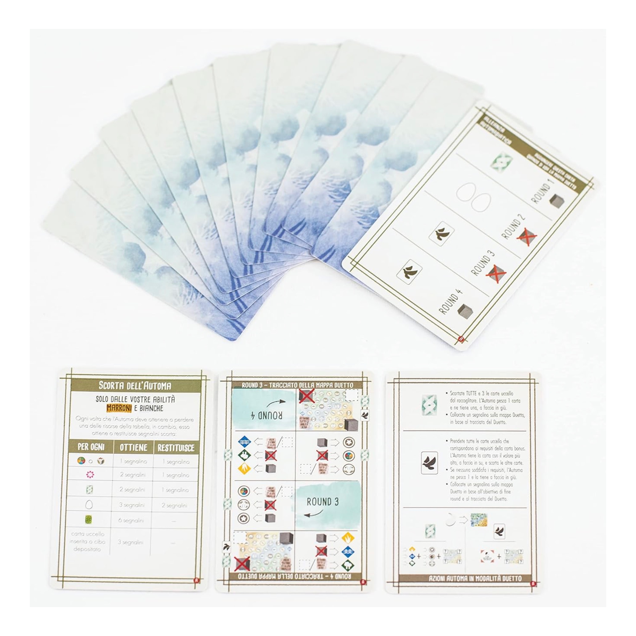 – 122 carte (90 carte uccello, – 14 carte bonus e 18 carte Automa) 57x87mm
