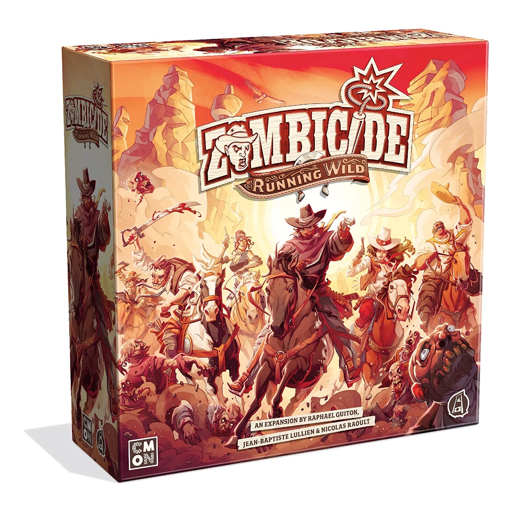 Running Wild introduce il combattimento In Sella in Zombicide: Undead or Alive, e offre 6 nuovi Sopravvissuti in grado di spostarsi a piedi o a cavallo grazie alle doppie miniature: standard e In Sella. I Sopravvissuti nella modalità In Sella sono più veloci, più forti e possono sfuggire agli Zombie, ma non possono entrare negli edifici. E se dovete smontare, assicuratevi di proteggere le vostre fidate cavalcature!