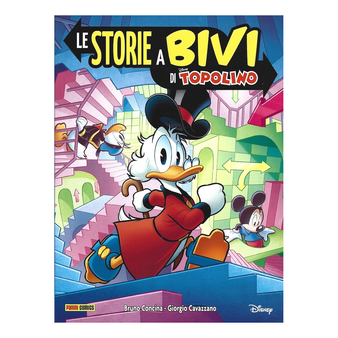 Una pubblicazione di pregio che raccoglie le prime tre storie a bivi “d’epoca”, scritte da Bruno Concina – il primo autore ad aver applicato il meccanismo dei bivi al fumetto italiano – e disegnate dal Maestro Giorgio Cavazzano. Topolino e il segreto del castello vanta il primato di essere la prima storia a bivi pubblicata su Topolino n. 1565 del 24 novembre 1985. Per la prima volta, la sceneggiatura racchiudeva più “archi narrativi” in un unico racconto, dando la possibilità al lettore di scegliere il finale e di renderlo “protagonista”. Da questa avventura che ha fatto da apripista ne sono poi nate molte altre che hanno toccato i più disparati argomenti: le vacanze, la storia romana, le mappe e i tesori nascosti e gli extraterrestri, come Paperino e gli incontri ravvicinati di 5 tipi o Zio Paperone e l’anfora enigmatica. Il volume è arricchito da approfondimenti a tema.