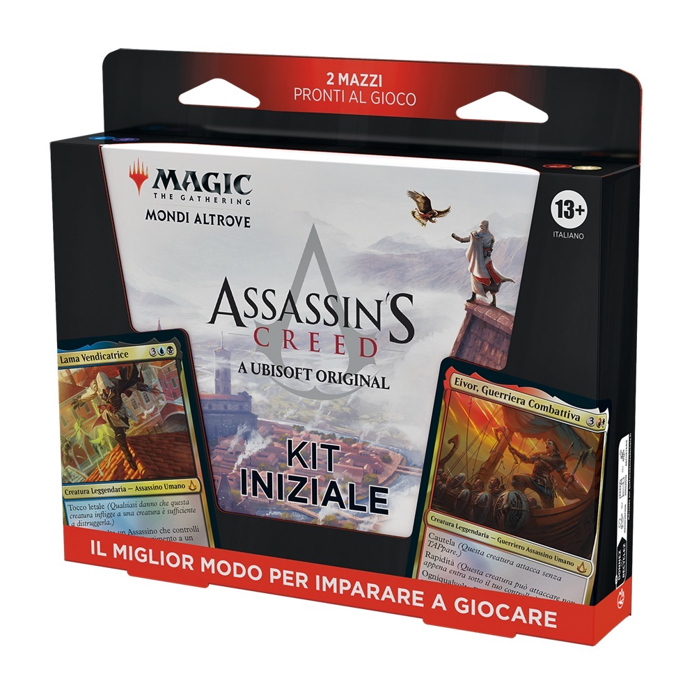 Infiltrate the world of Assassin’s Creed and begin your initiation into the Order. Gear up for your first games of Magic with two Assassin’s Creed-themed decks (featuring two Mythic Rare cards and eight Rare cards). Learn the ropes with the included booklet, then leap into action and claim victory! This Magic: The Gathering – Assassin’s Creed Starter Kit contains 2 ready-to-play 60-card decks (Lands included), 2 deck boxes to store them in, 1 Magic how-to-play guide booklet, and 2 double-sided reference cards (Turn Order/Attacking & Blocking).