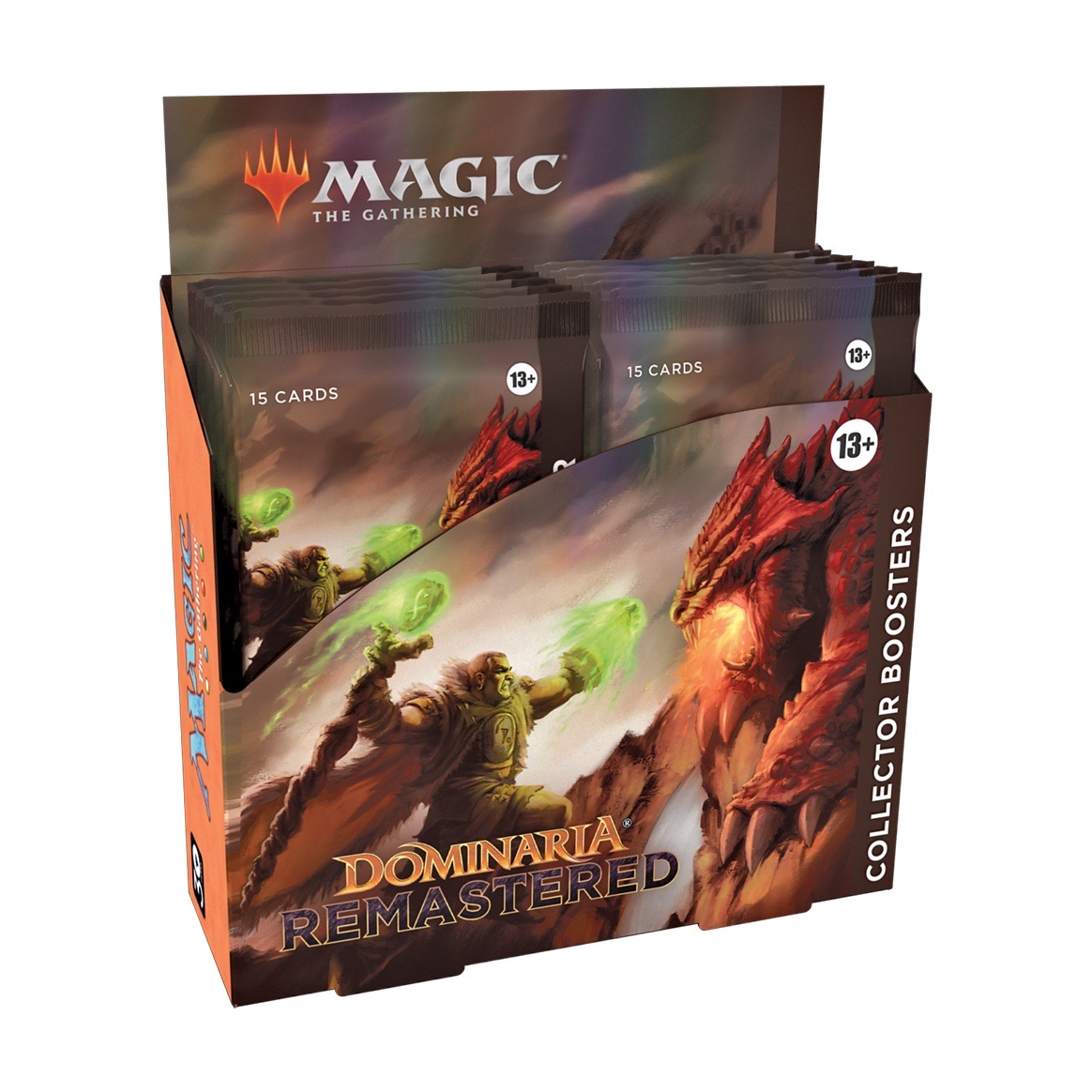 La confezione di Collector Booster di Dominaria Remastered contiene 12 Collector Booster di Dominaria Remastered.