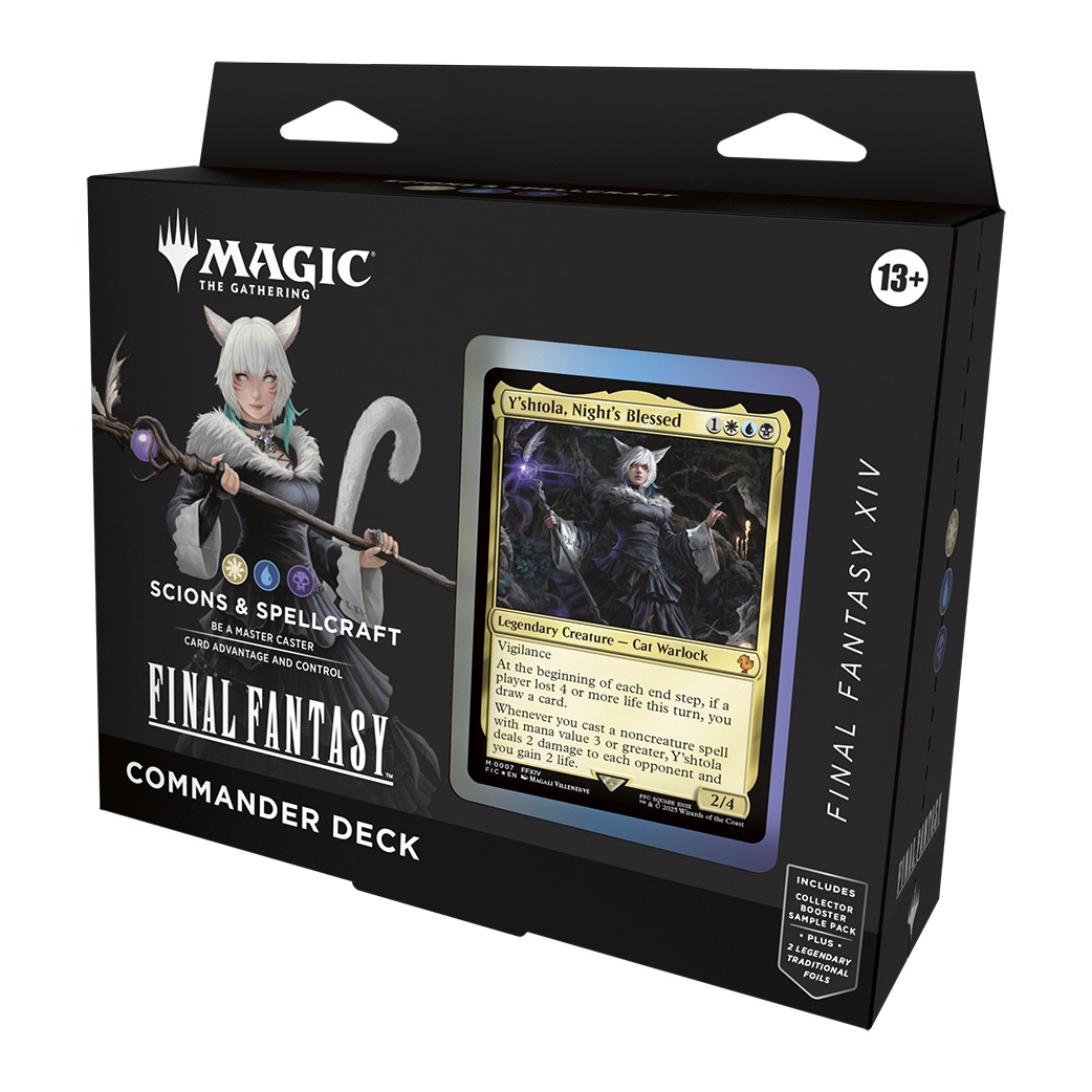 L’intera saga di FINAL FANTASY è qui! I tuoi giocatori entreranno negli amati mondi dei sedici giochi principali della serie GDR FINAL FANTASY, con un mazzo Commander composto principalmente da carte da FINAL FANTASY VI, FINAL FANTASY VII, FINAL FANTASY X, e FINAL FANTASY XIV. Lanceranno potenti magie, richiameranno iconiche invocazioni e visiteranno i loro luoghi preferiti in sella a un chocobo. Innumerevoli elementi di quei giochi sono presenti per permettere ai giocatori di creare le proprie storie.