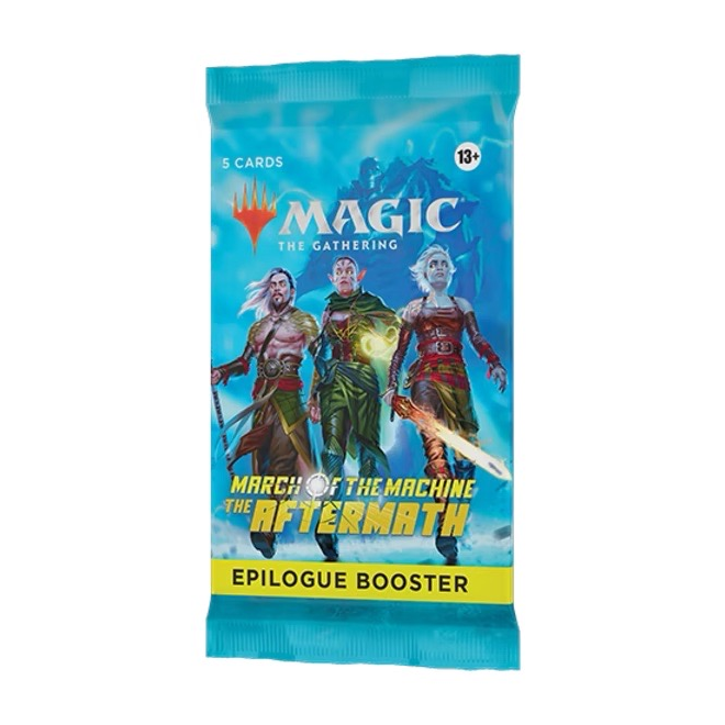 Ogni busta Epilogo di L’Avanzata delle Macchine: L’Indomani contiene 5 carte, con una combinazione di 1-3 carte di rarità rara o superiore e 2-4 carte non comuni. Ogni busta contiene un totale di 1–2 carte foil di qualsiasi rarità.