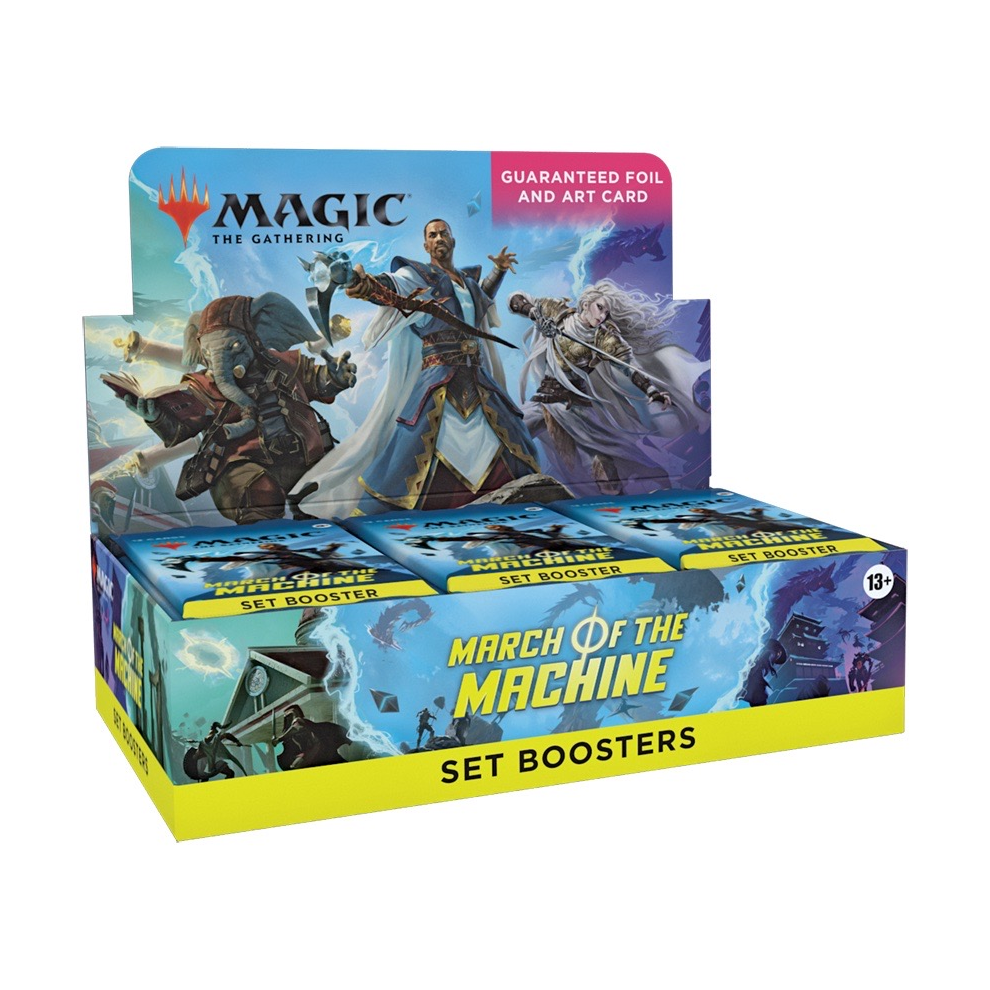 La confezione di buste dell’espansione di L’Avanzata delle Macchine contiene 30 buste dell’espansione di L’Avanzata delle Macchine. Ogni busta dell’espansione contiene 12 carte di Magic, 1 carta con illustrazione e 1 carta pedina/promozionale, carta-guida o carta della “Lista” (una carta speciale della storia di Magic, disponibile nel 25% delle buste).