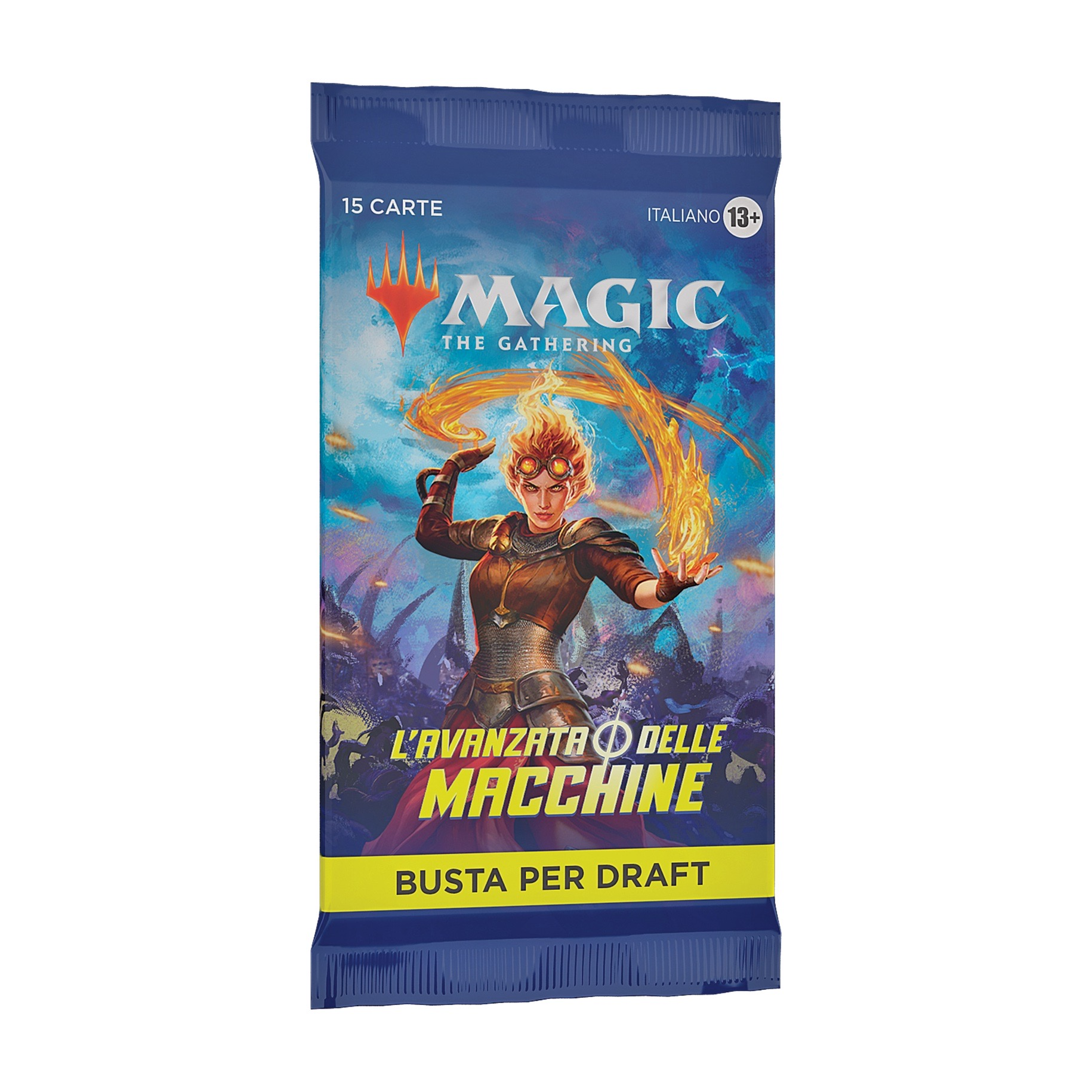 Ogni busta per draft di L’Avanzata delle Macchine contiene 15 carte e 1 carta pedina/promozionale o carta-guida, comprese 1-2 carte di rarità rara o superiore, 3-5 non comuni, 8-9 comuni e 1 terra. Planeswalker mitico foil senza bordo in <1% delle buste. Una foil di qualsiasi rarità sostituisce una comune nel 33% delle buste.
