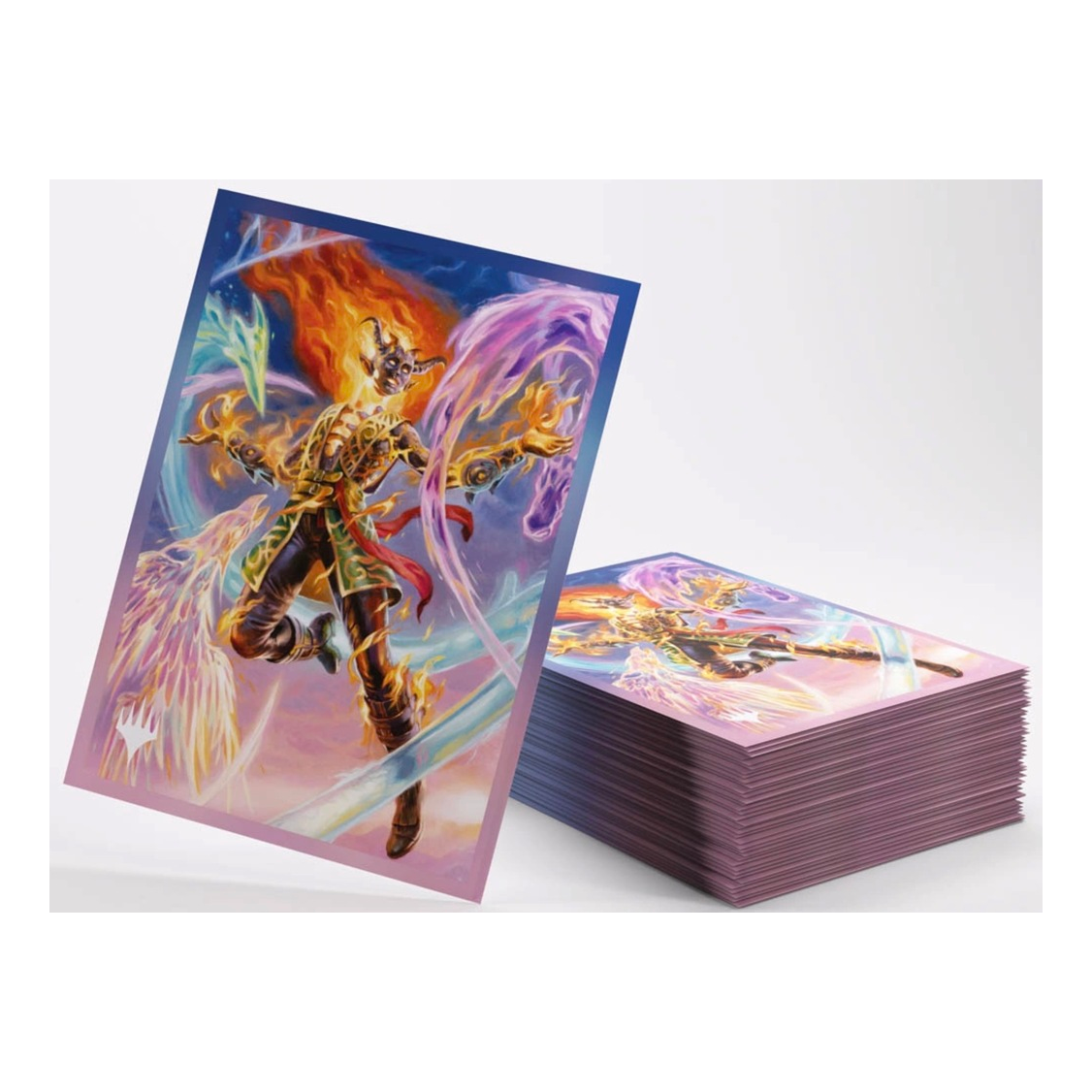 These premium-quality, full-color printed Art Sleeves with textured finish are a must-have for every fan of the game. The matte back and clear front provide an exceptional tactile feel and an incredibly smooth shuffle experience. Each pack includes 105 sleeves and comes in fully plastic-free full-art packaging with a retractable hanger.