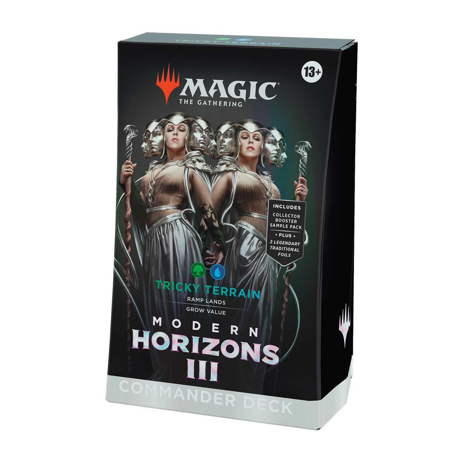 In Commander, four players come together to show their strength and strategy, with one player coming out on top. Each 100-card ready-to-play Modern Horizons 3 Commander Deck makes it easy for Commander fans in your store to grab a deck and play right away.