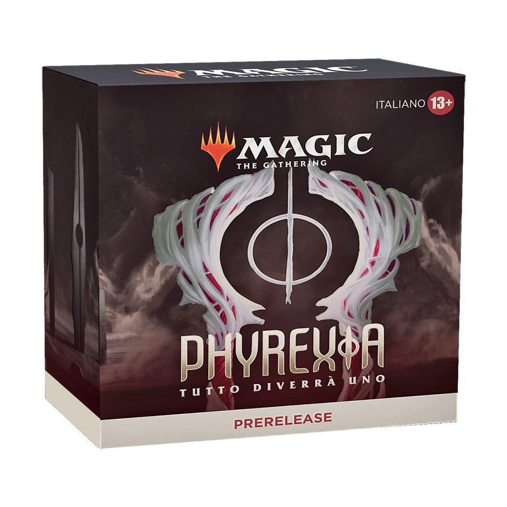 Il Prerelease Pack di Phyrexia: Tutto Diverrà Uno contiene 6 buste per draft di Phyrexia: Tutto Diverrà Uno, 1 carta rara o rara mitica con marchio foil, 1 carta con codice per Arena (disponibile soltanto in alcune regioni), 1 portamazzo e 1 segnapunti vita Spindown.