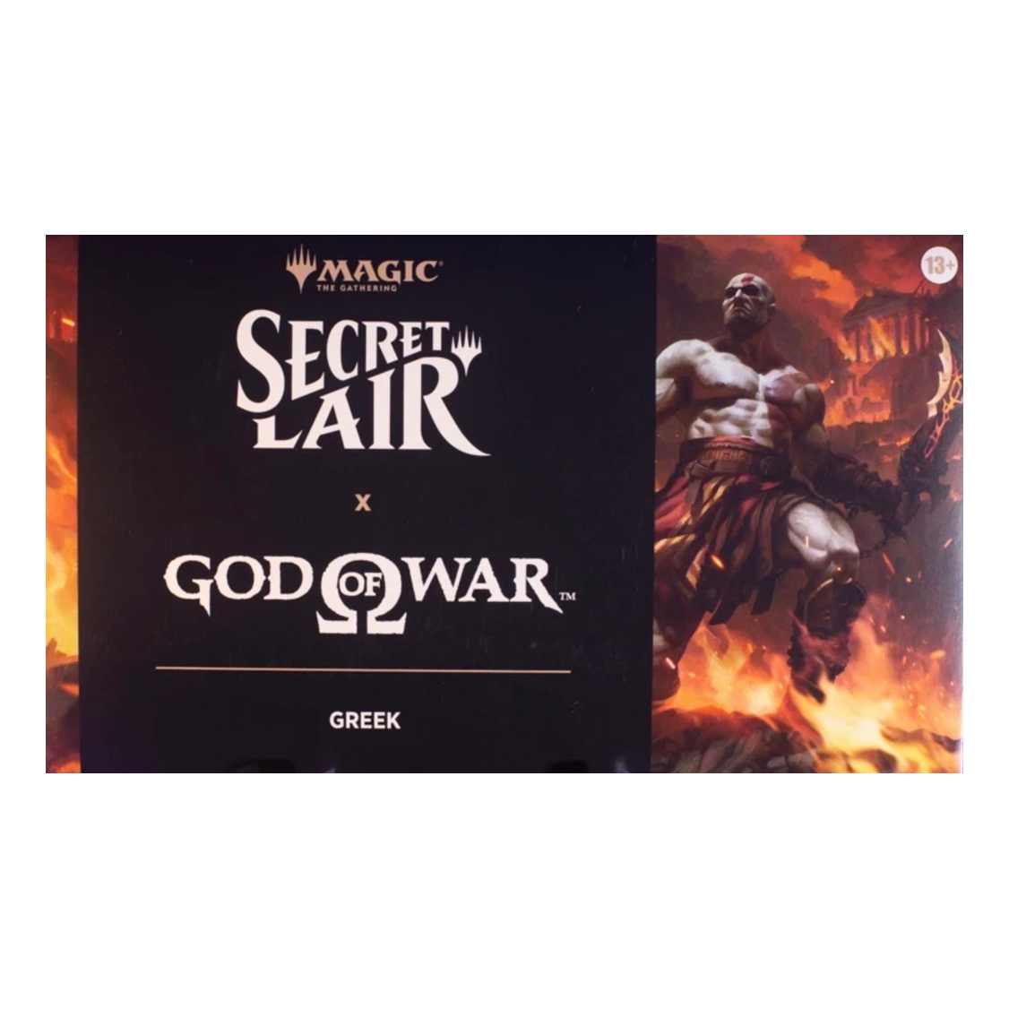 Santa Monica Studio teamed up with Wizards of the Coast to create two Secret Lair packs that trace Kratos’s journey—from unstoppable fury to a father shaped by love and legacy. The first Secret Lair pack (Greek) explores Kratos from the original trilogy as an embodiment of raw chaos.