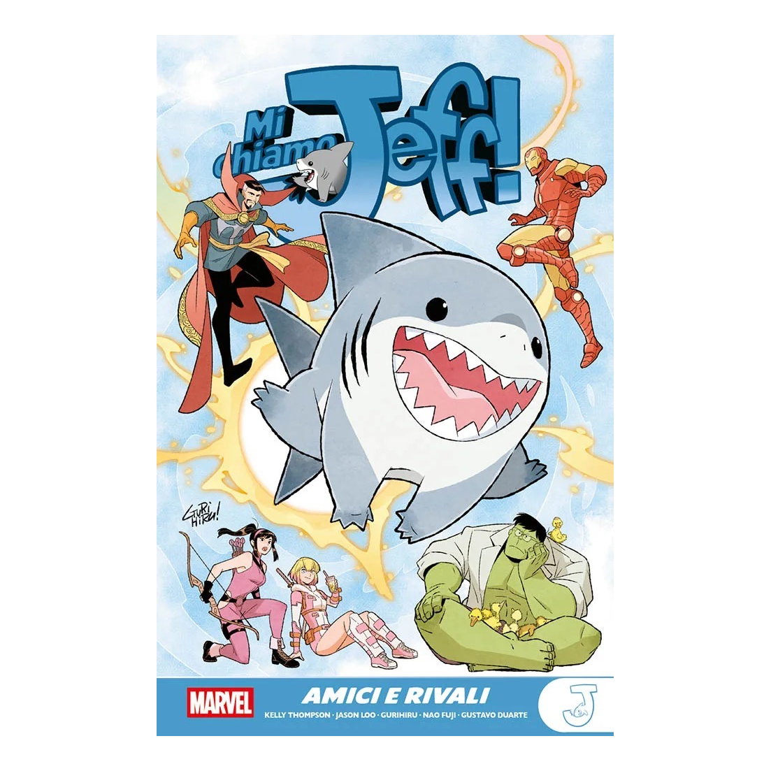 Jeff lo Squalo di terra provoca un adorabile pandemonio in tutto l’Universo Marvel! Si unisce agli X Men, a Spider-Man, a Hulk e ad altri personaggi in avventure pazzesche. E quando lui e i suoi amici animali restano coinvolti in una battaglia per la Gemma dello Spazio e vengono catapultati a Ovunque, si vedono costretti a collaborare. Ospiti speciali: Loki Alligatore, i mici della Gatta Nera, Throg e altri cuccioli!