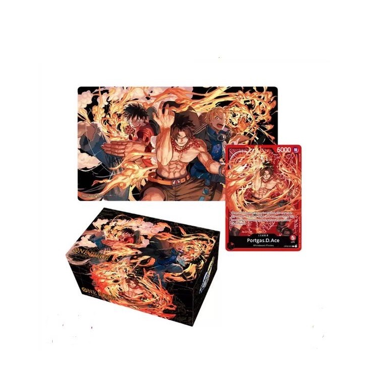 For the ONE PIECE CARD GAME you can now get a set that includes a playmat, storage box, and a card! Enjoy the game even more with these accessories that show the bond between the 3 brothers, Ace, Sabo, and Luffy!