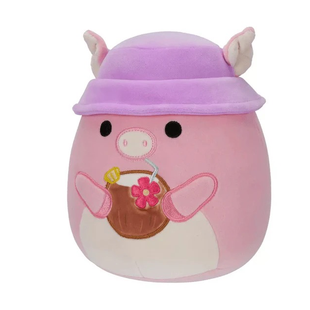 Peter the Pig with Coconut Drink and Bucket Hat plush toy 20 cm.