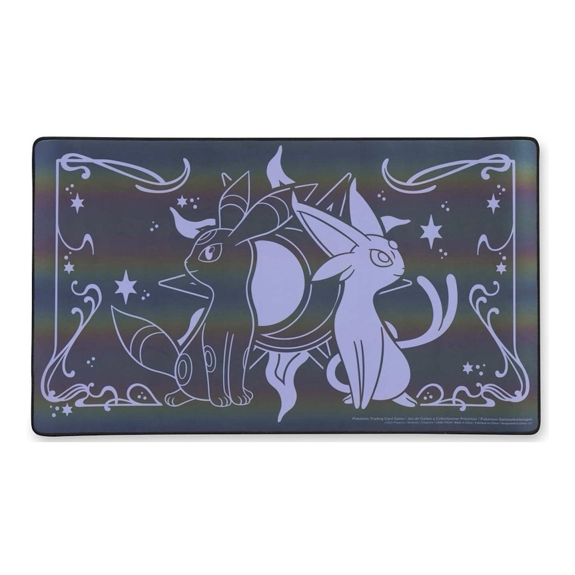 The time of day that Eevee evolves can determine the Pokémon it becomes. Bring that versatility to your TCG matches with this Espeon and Umbreon playmat—it’s a fun way to add pizzazz to your space—both in and out of battles!