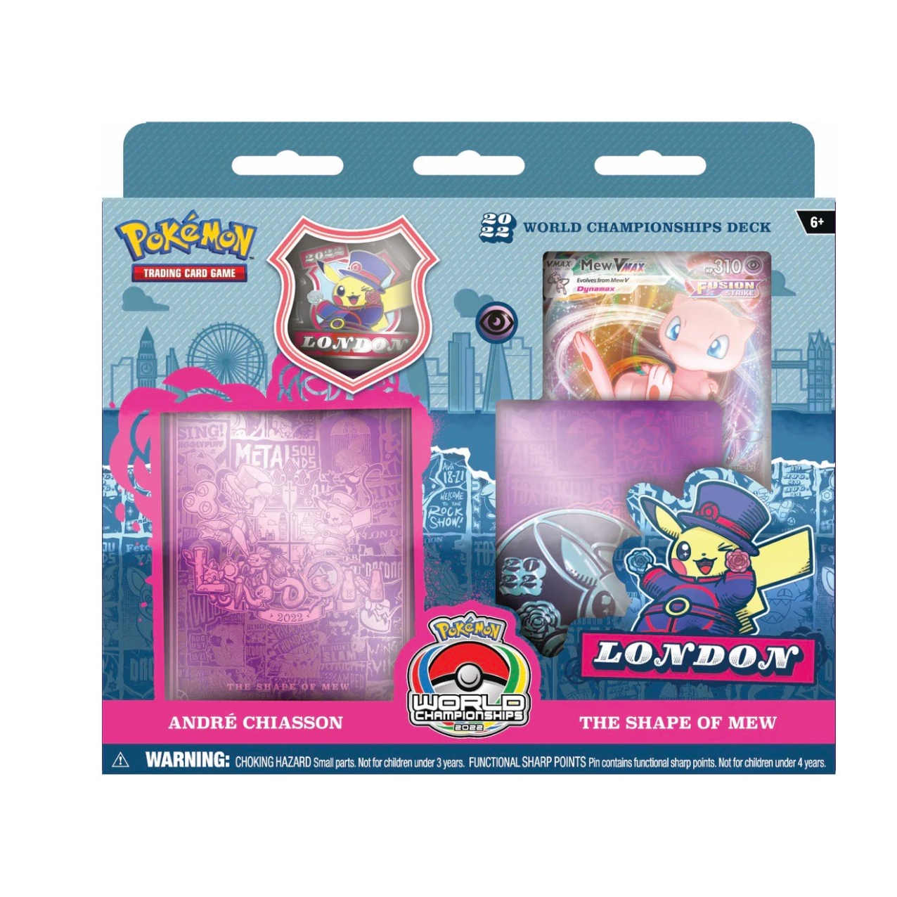 Prendi un mazzo World Championships e gioca come un campione! Scegli uno dei quattro potenti mazzi, ciascuno una replica carta per carta del mazzo di un vero contendente al titolo dei Campionati mondiali di giochi di carte collezionabili Pokémon 2022. Troverai mazzi basati su quelli utilizzati dal campione della divisione Junior Rikuto Ohashi (Giappone), dal finalista senior Sebastian Lashmet (Stati Uniti), dal quarto di finale della divisione Master André Chiasson (Canada) e dal campione della divisione Master Ondřej Škubal (Repubblica Ceca).