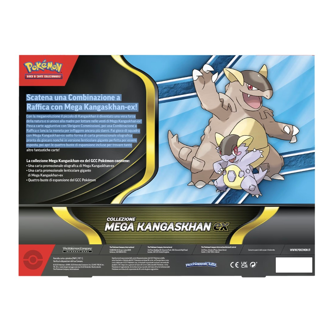 Con la megaevoluzione il piccolo di Kangaskhan è diventato una vera forza della natura e si unisce alla madre per lottare nelle vesti di Mega Kangaskhan-ex! Pesca carte aggiuntive con Sbrigare Commissioni, poi usa Combinazione a Raffica e lancia la moneta per infliggere ancora più danni. Fai gioco di squadra con Mega Kangaskhan-ex sotto forma di carta promozionale olografica pronta da giocare nonché in versione lenticolare gigante perfetta per essere esposta, poi apri le quattro buste di espansione incluse per trovare tante altre fantastiche carte.