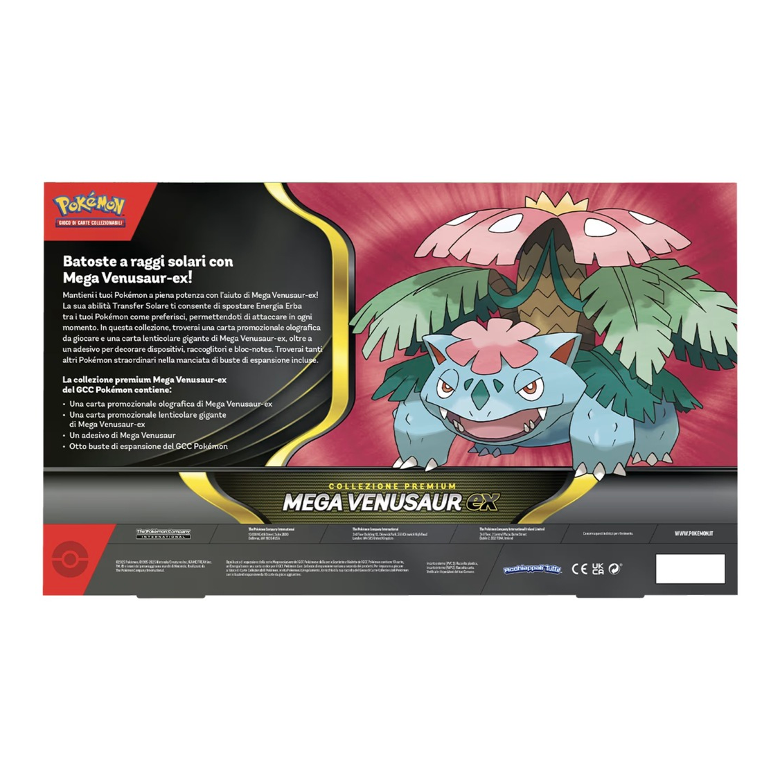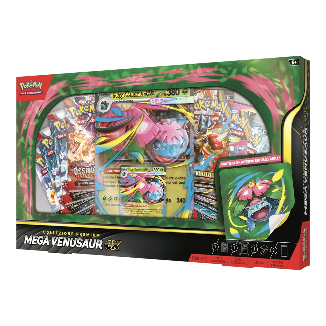 La sua abilità Transfer Solare ti consente di spostare Energia Erba tra i tuoi Pokémon come preferisci, permettendoti di attaccare in ogni momento. In questa collezione, troverai una carta promozionale olografica da giocare e una carta lenticolare gigante di Mega Venusaur-ex, oltre a un adesivo per decorare dispositivi, raccoglitori e bloc-notes. Troverai tanti altri Pokémon straordinari nella manciata di buste di espansione incluse.